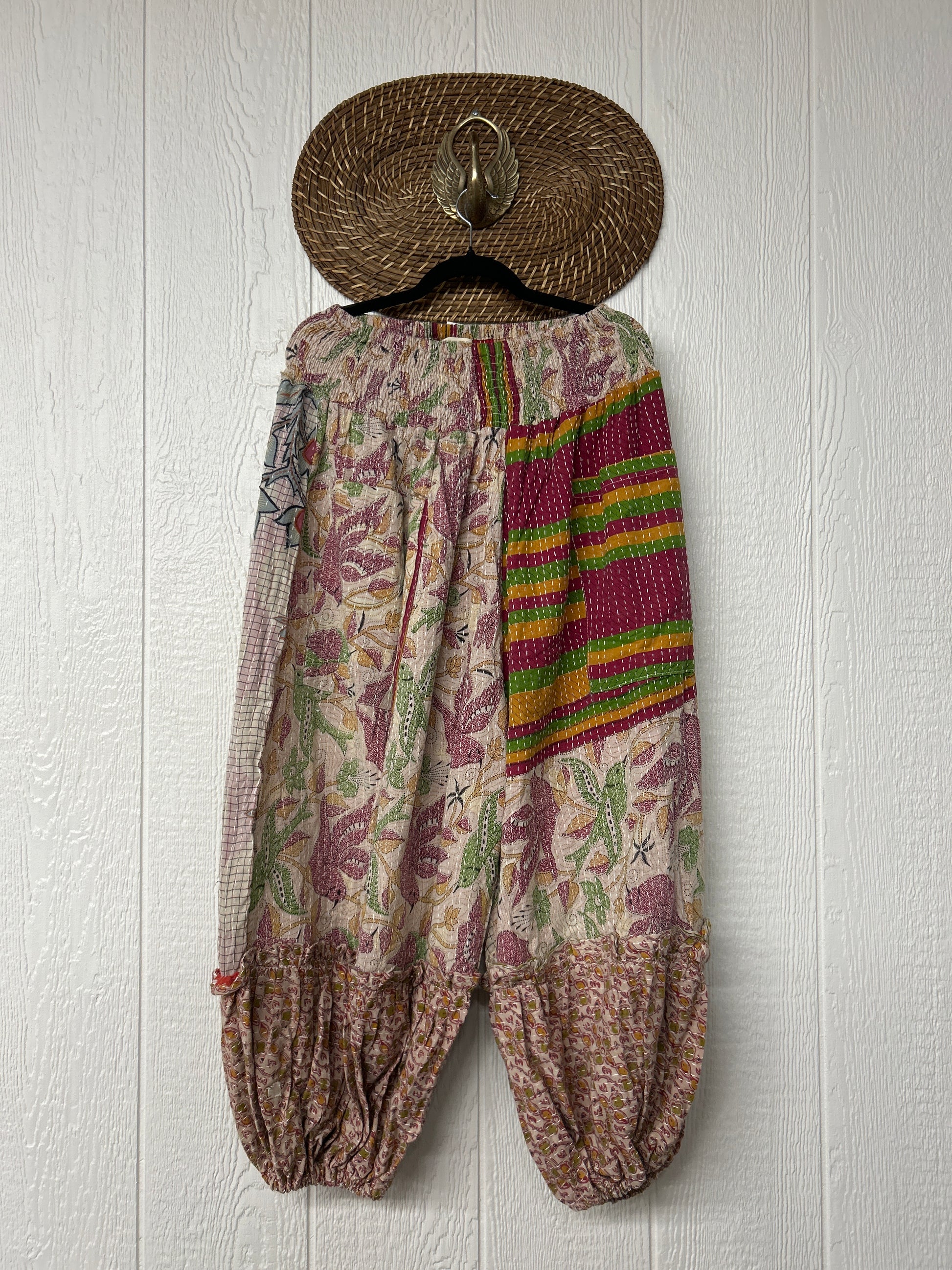 Crafted from our ultra lux kantha stitched vintage cotton sari these pants feature exterior slouchy pockets, a stretchy waistband and an elastic ankle opening. Dress these dream pants up or down to become the ultimate vibe!