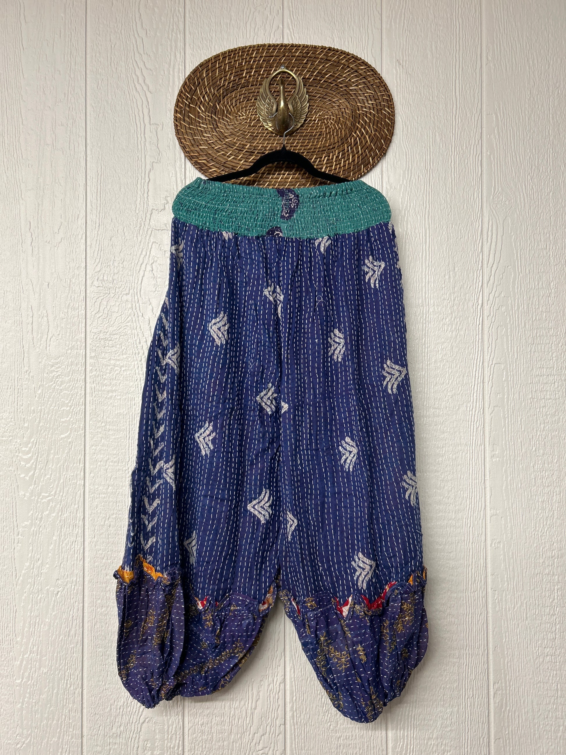Crafted from our ultra lux kantha stitched vintage cotton sari these pants feature exterior slouchy pockets, a stretchy waistband and an elastic ankle opening. Dress these dream pants up or down to become the ultimate vibe!