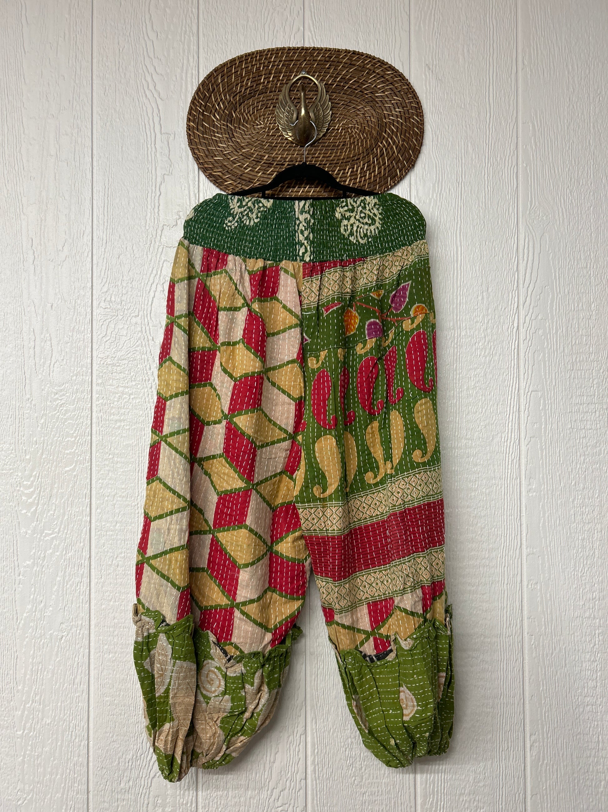Crafted from our ultra lux kantha stitched vintage cotton sari these pants feature exterior slouchy pockets, a stretchy waistband and an elastic ankle opening. Dress these dream pants up or down to become the ultimate vibe!