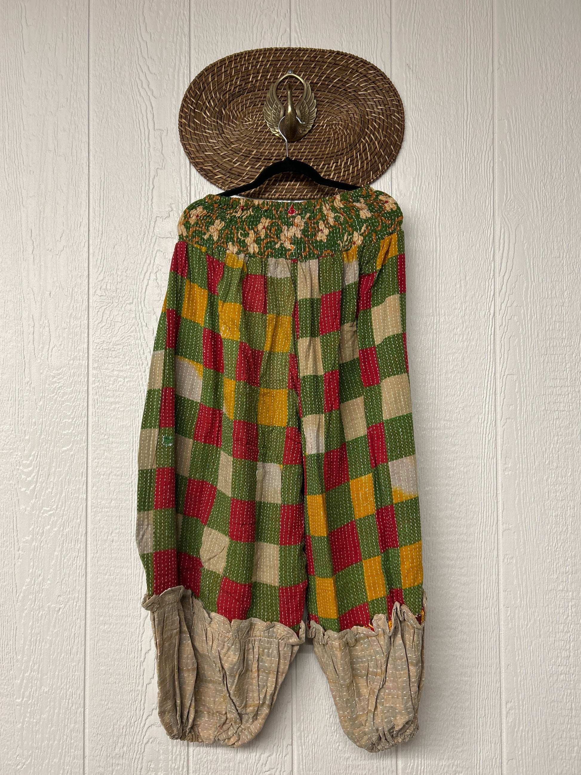 Crafted from our ultra lux kantha stitched vintage cotton sari these pants feature exterior slouchy pockets, a stretchy waistband and an elastic ankle opening. Dress these dream pants up or down to become the ultimate vibe!