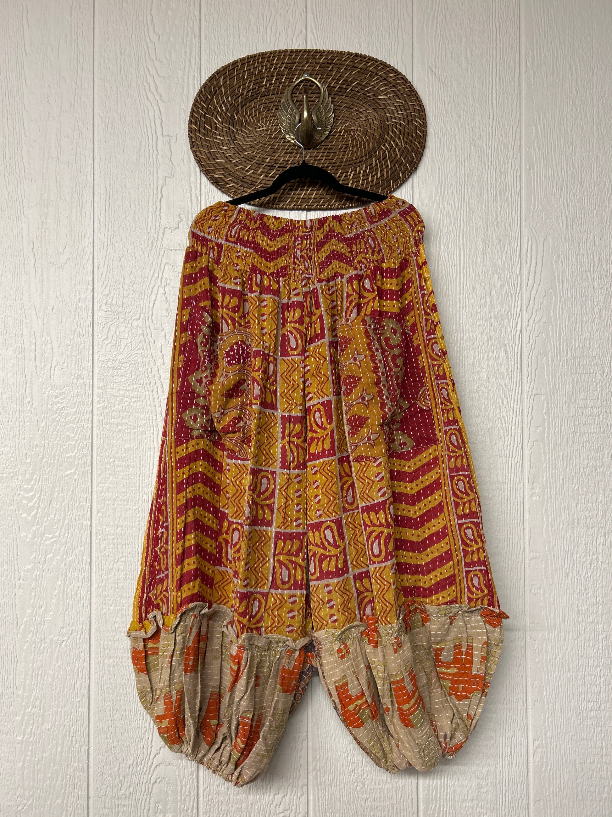 Crafted from our ultra lux kantha stitched vintage cotton sari these pants feature exterior slouchy pockets, a stretchy waistband and an elastic ankle opening. Dress these dream pants up or down to become the ultimate vibe!