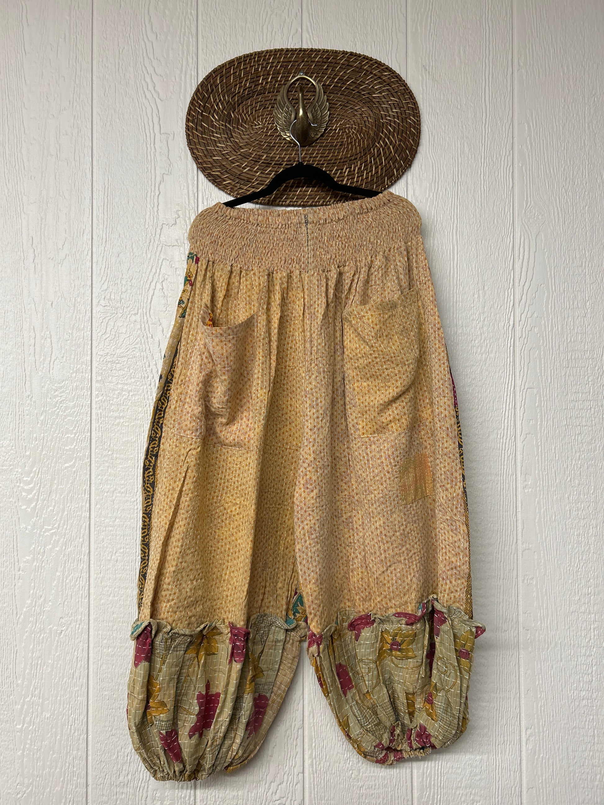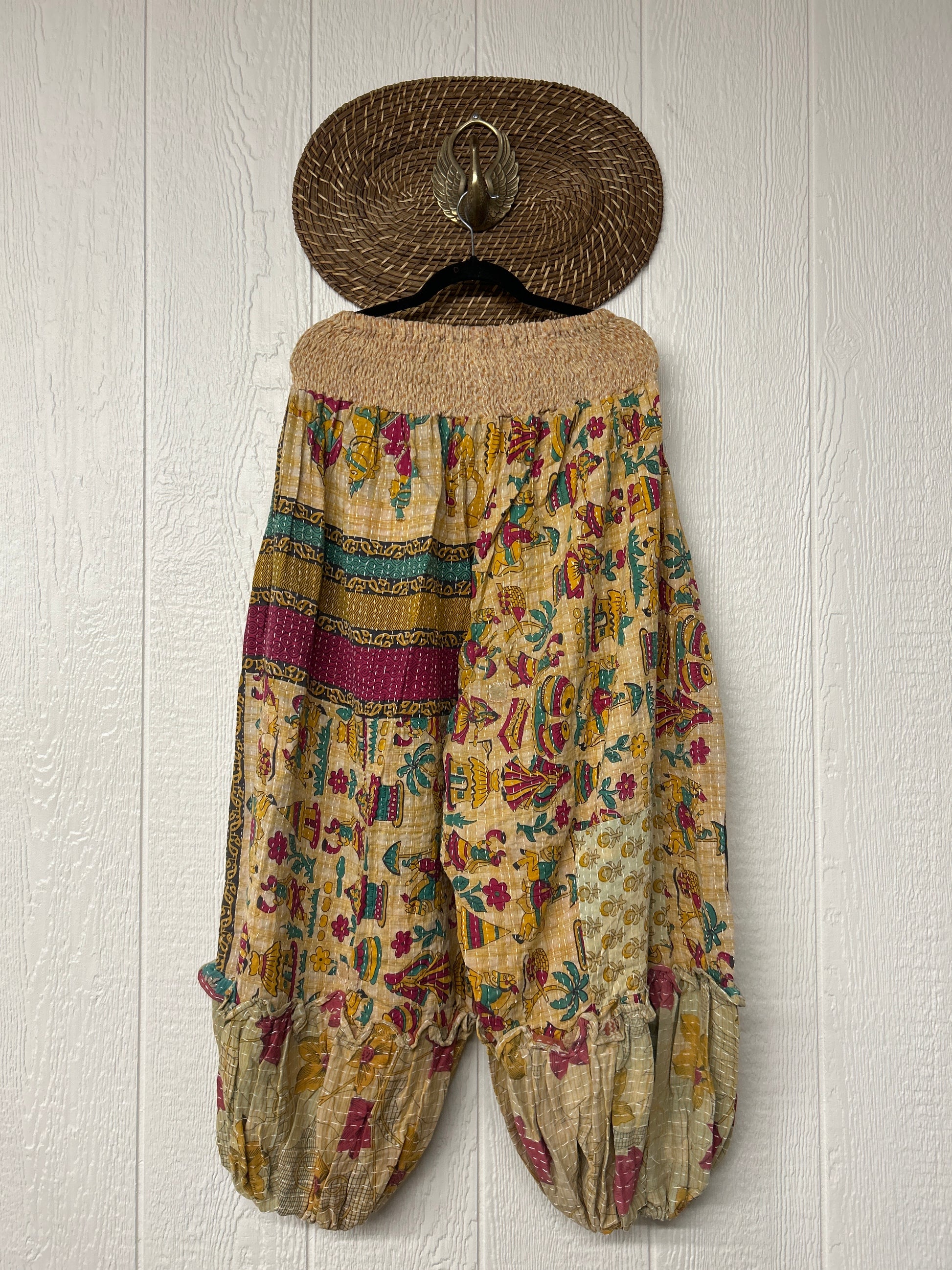 Crafted from our ultra lux kantha stitched vintage cotton sari these pants feature exterior slouchy pockets, a stretchy waistband and an elastic ankle opening. Dress these dream pants up or down to become the ultimate vibe!