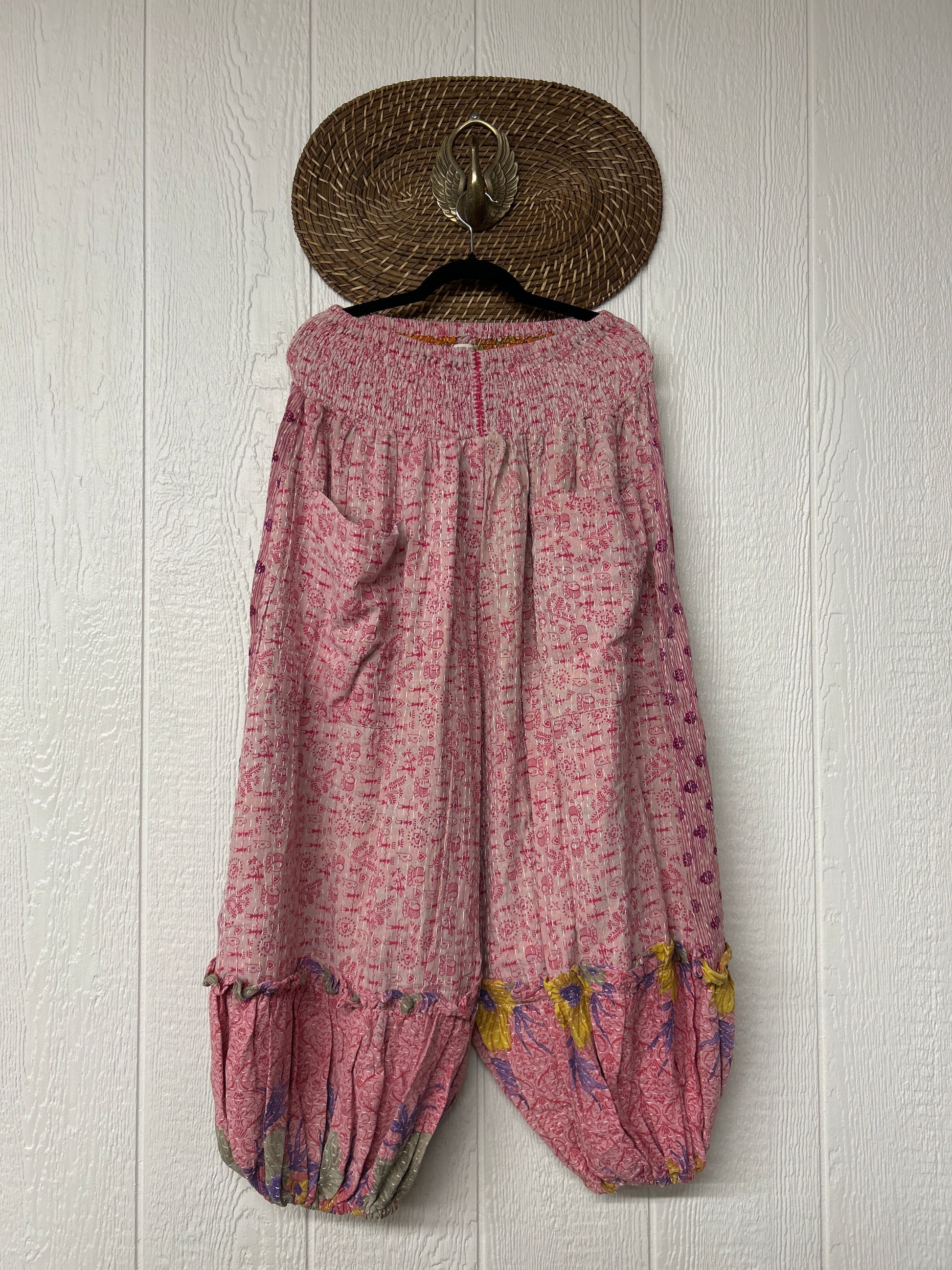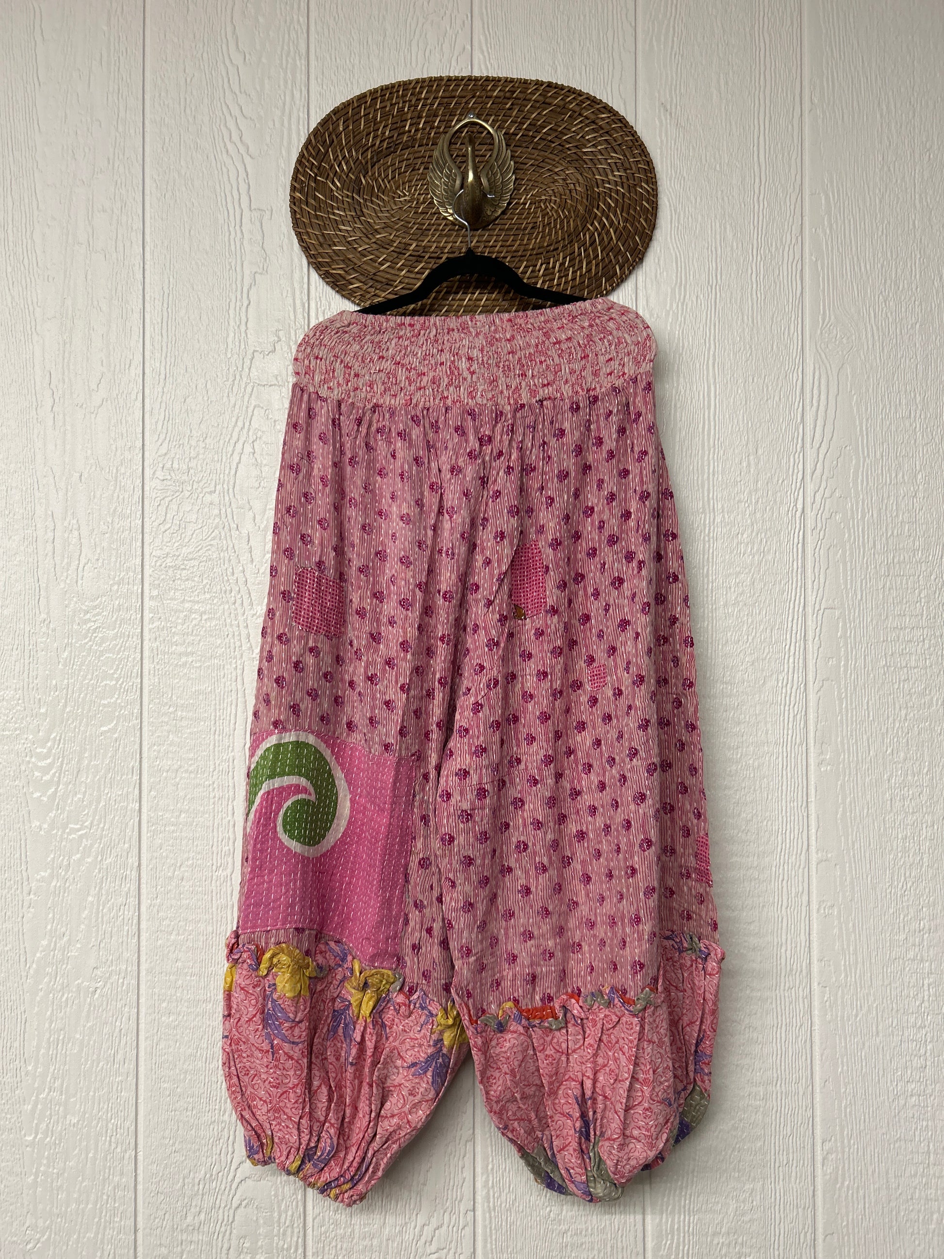 Crafted from our ultra lux kantha stitched vintage cotton sari these pants feature exterior slouchy pockets, a stretchy waistband and an elastic ankle opening. Dress these dream pants up or down to become the ultimate vibe!
