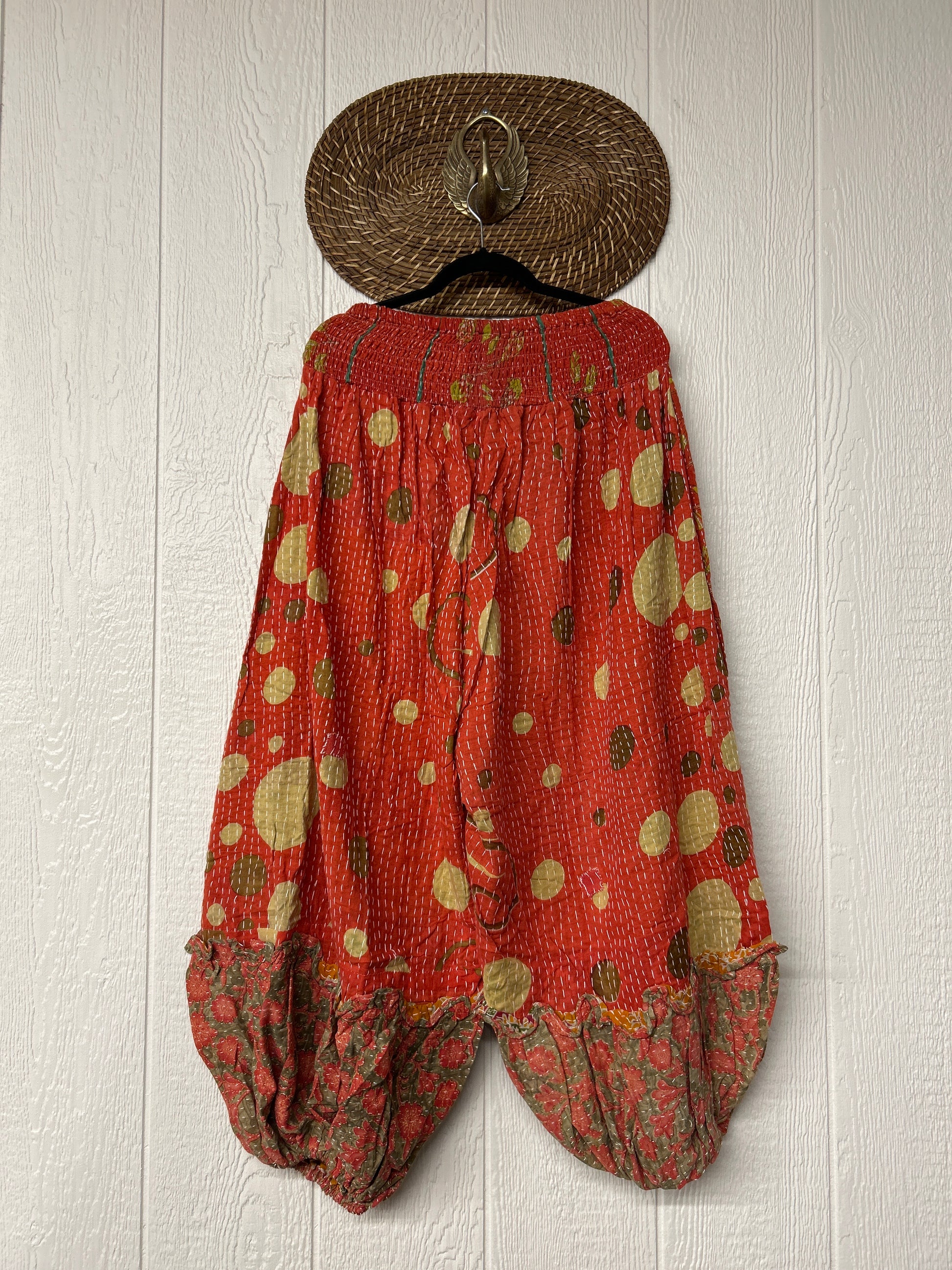 Crafted from our ultra lux kantha stitched vintage cotton sari these pants feature exterior slouchy pockets, a stretchy waistband and an elastic ankle opening. Dress these dream pants up or down to become the ultimate vibe!