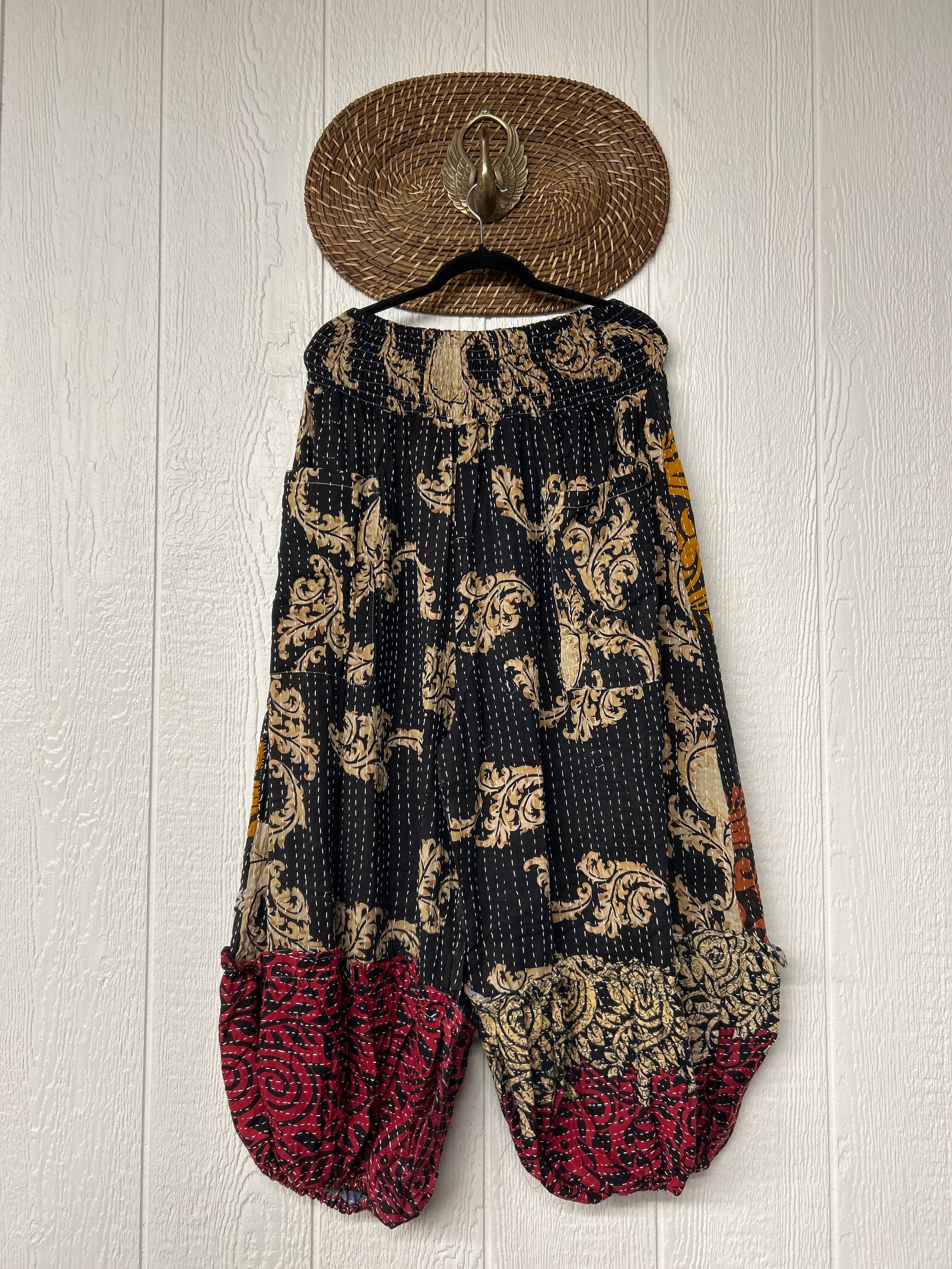 Crafted from our ultra lux kantha stitched vintage cotton sari these pants feature exterior slouchy pockets, a stretchy waistband and an elastic ankle opening. Dress these dream pants up or down to become the ultimate vibe!