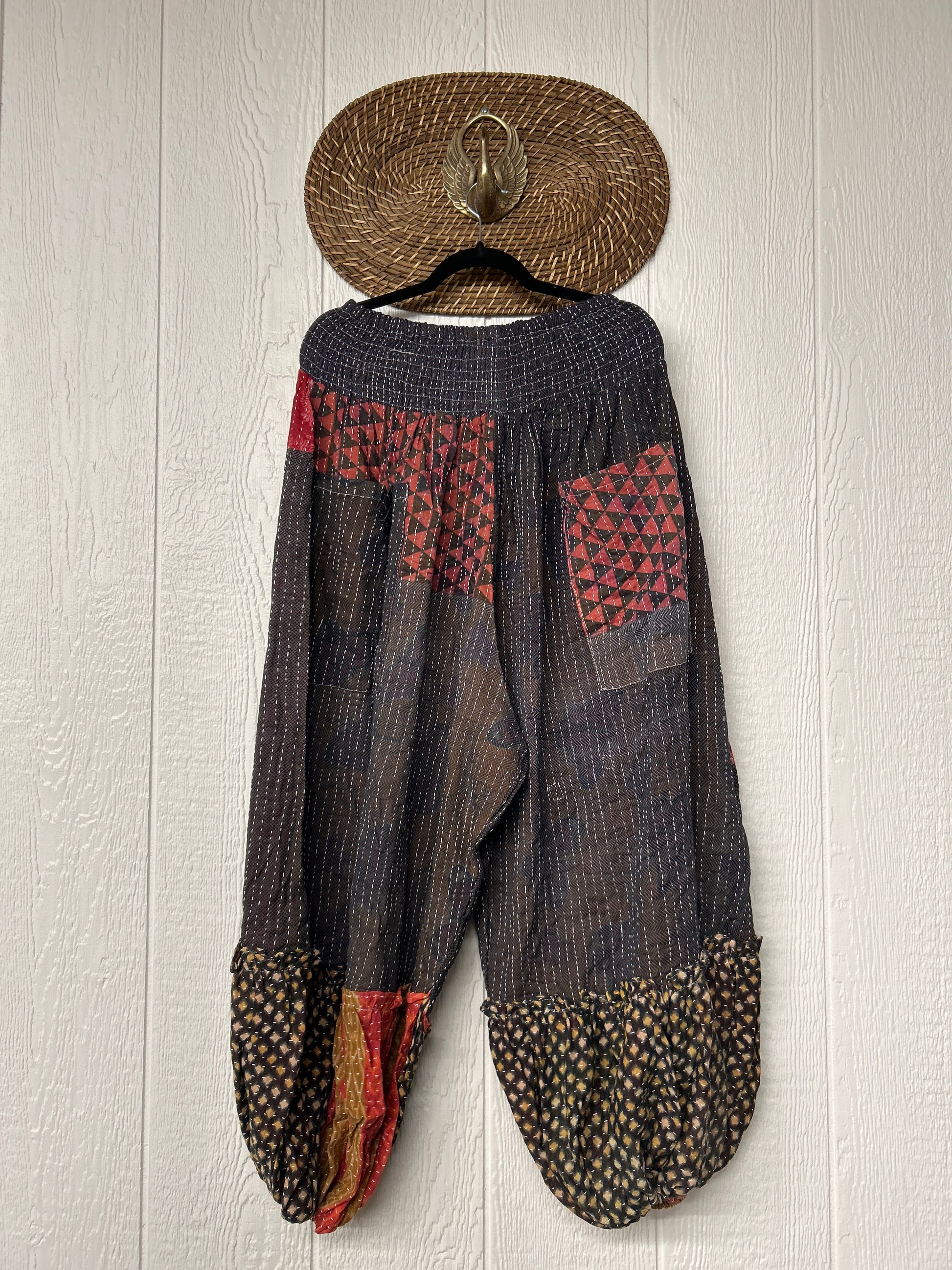 Crafted from our ultra lux kantha stitched vintage cotton sari these pants feature exterior slouchy pockets, a stretchy waistband and an elastic ankle opening. Dress these dream pants up or down to become the ultimate vibe!