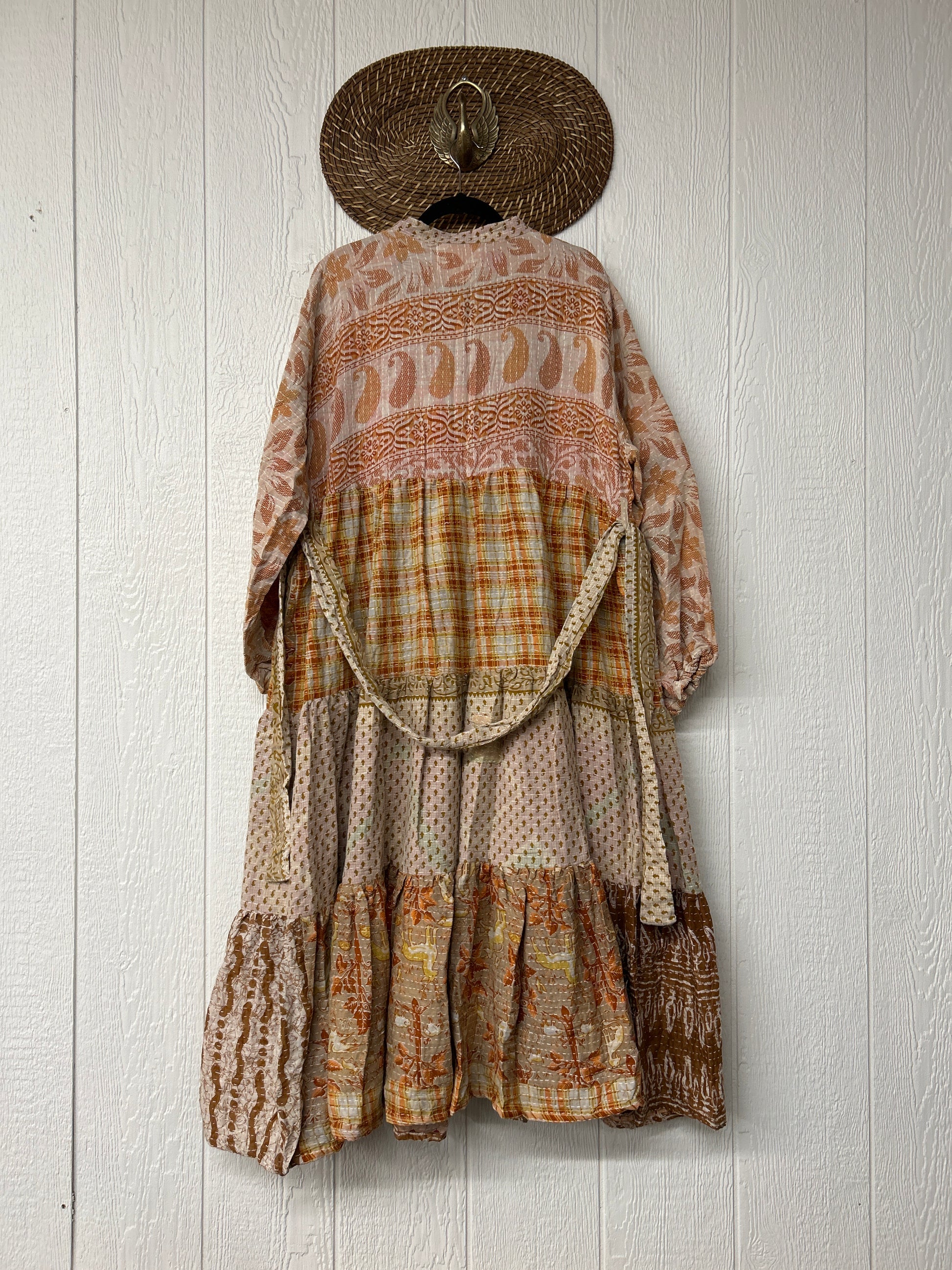 Disclosure: Our vintage styles have lived a full life before becoming the designs in our shop. Fabrics may have small threads or holes in the layers. Color inconsistency or small stains may be present. The saris are sewn together and extend the life of each design.