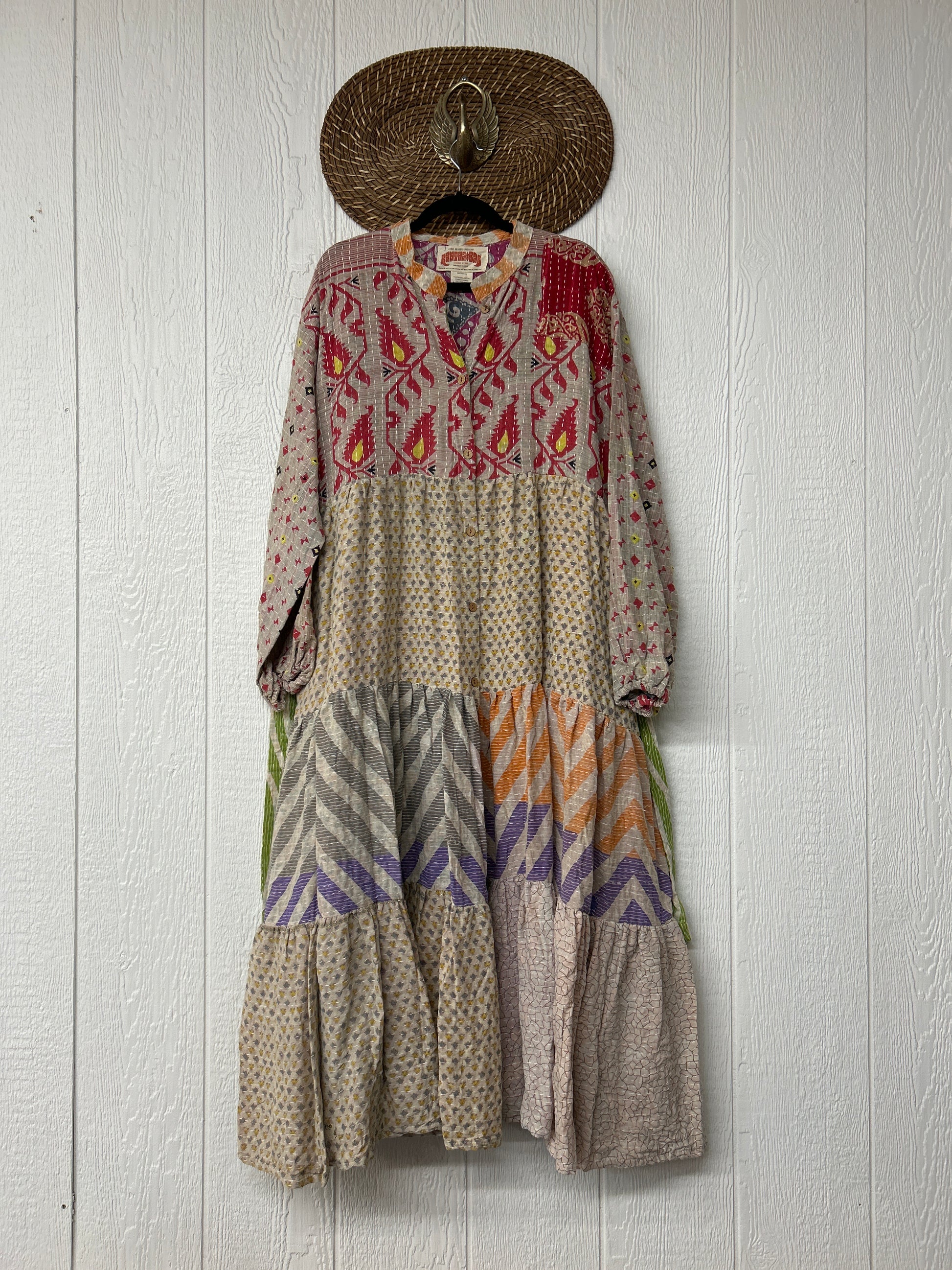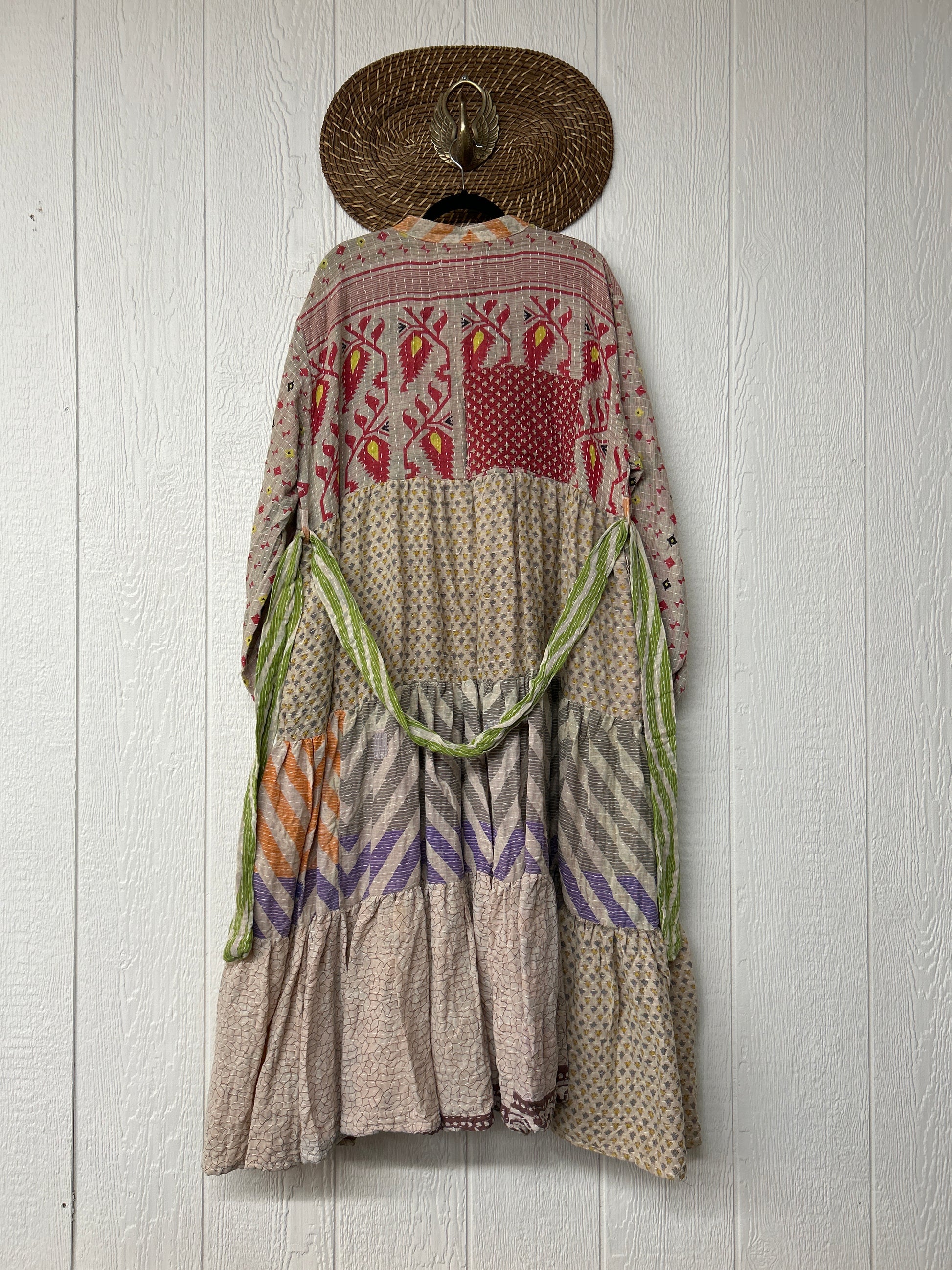 Disclosure: Our vintage styles have lived a full life before becoming the designs in our shop. Fabrics may have small threads or holes in the layers. Color inconsistency or small stains may be present. The saris are sewn together and extend the life of each design.