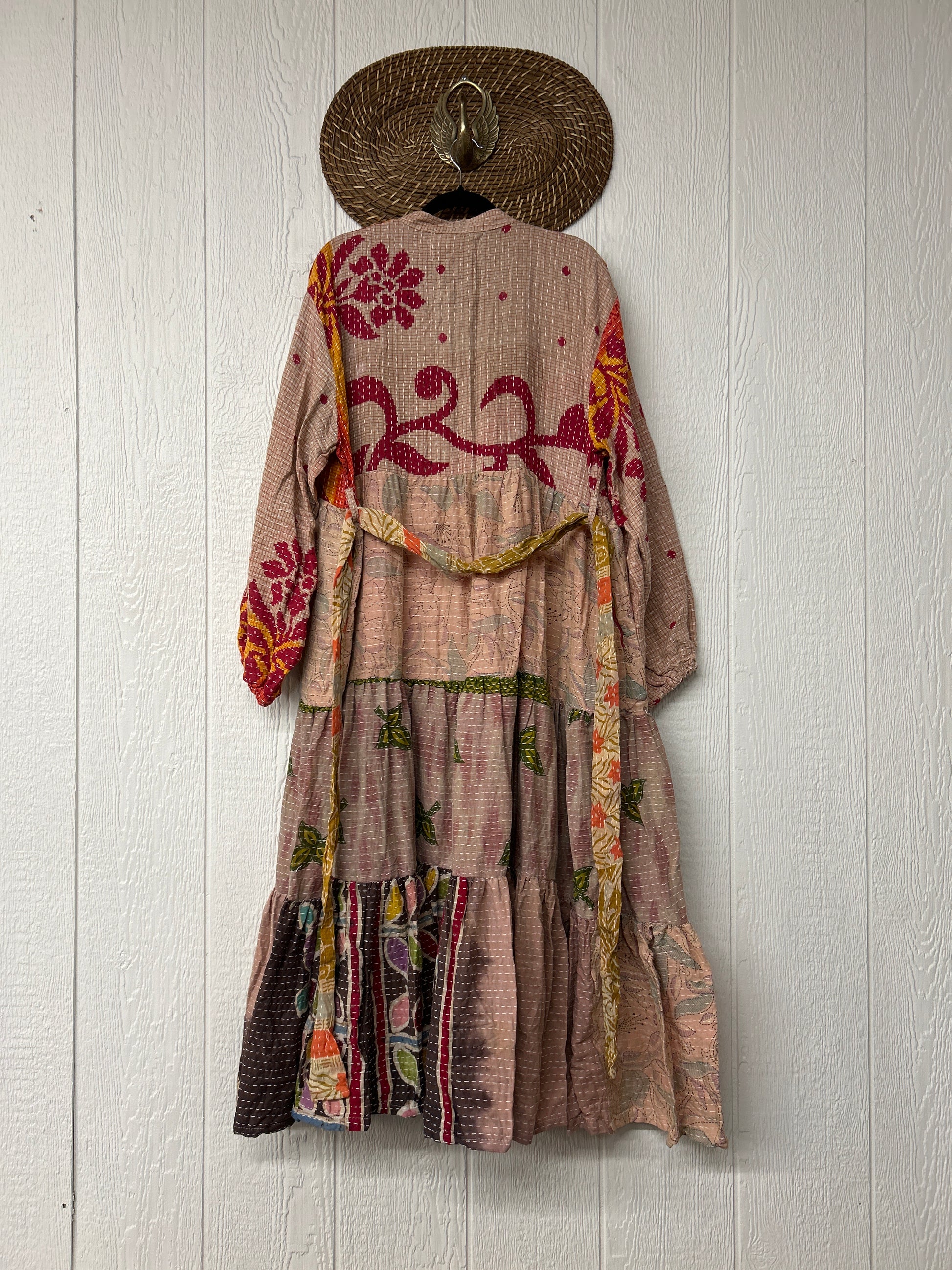 Disclosure: Our vintage styles have lived a full life before becoming the designs in our shop. Fabrics may have small threads or holes in the layers. Color inconsistency or small stains may be present. The saris are sewn together and extend the life of each design.