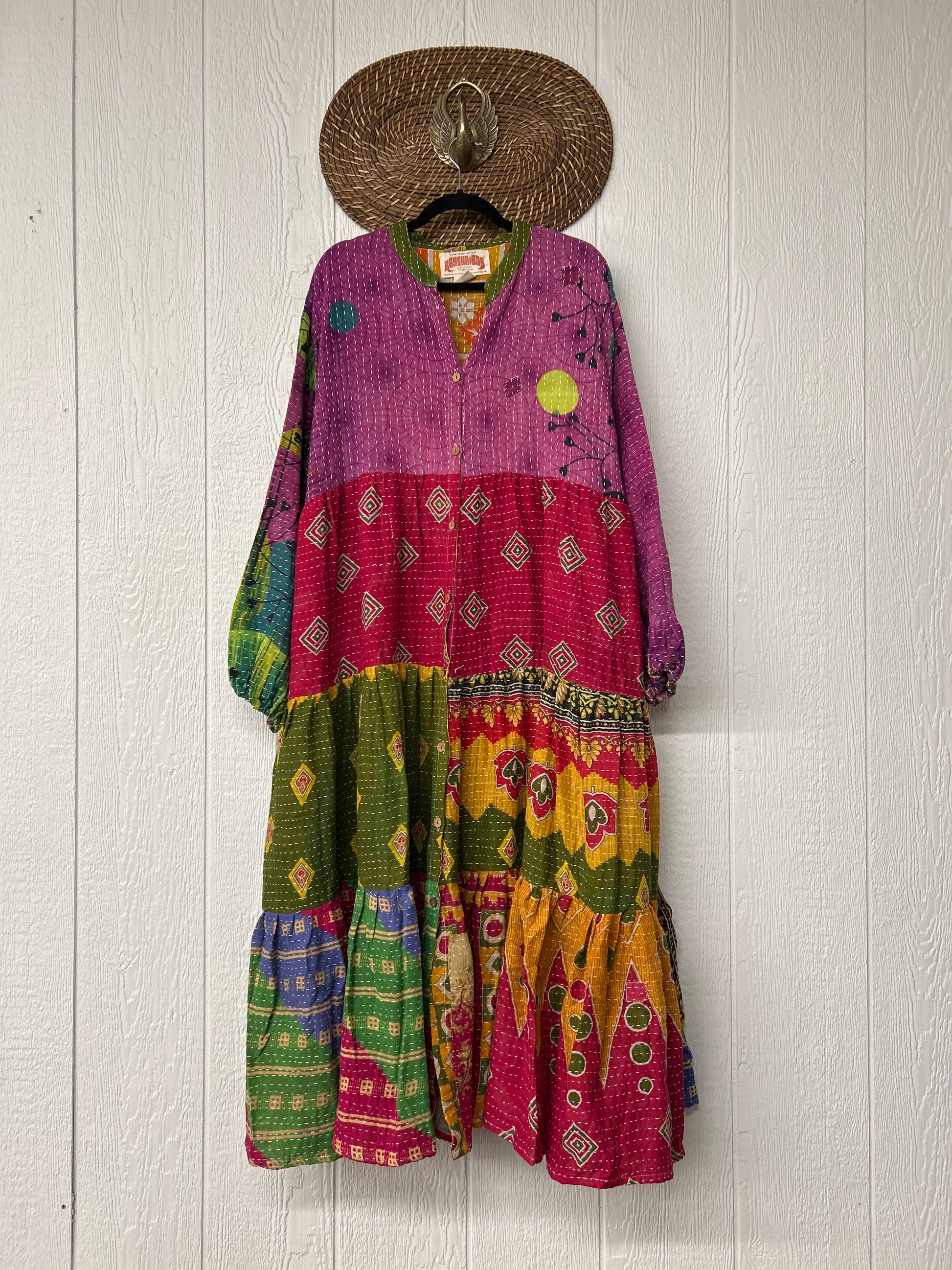 Disclosure: Our vintage styles have lived a full life before becoming the designs in our shop. Fabrics may have small threads or holes in the layers. Color inconsistency or small stains may be present. The saris are sewn together and extend the life of each design.