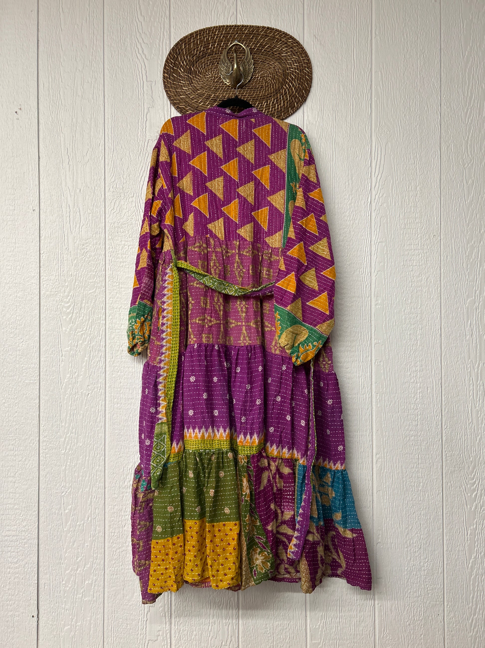 Disclosure: Our vintage styles have lived a full life before becoming the designs in our shop. Fabrics may have small threads or holes in the layers. Color inconsistency or small stains may be present. The saris are sewn together and extend the life of each design.