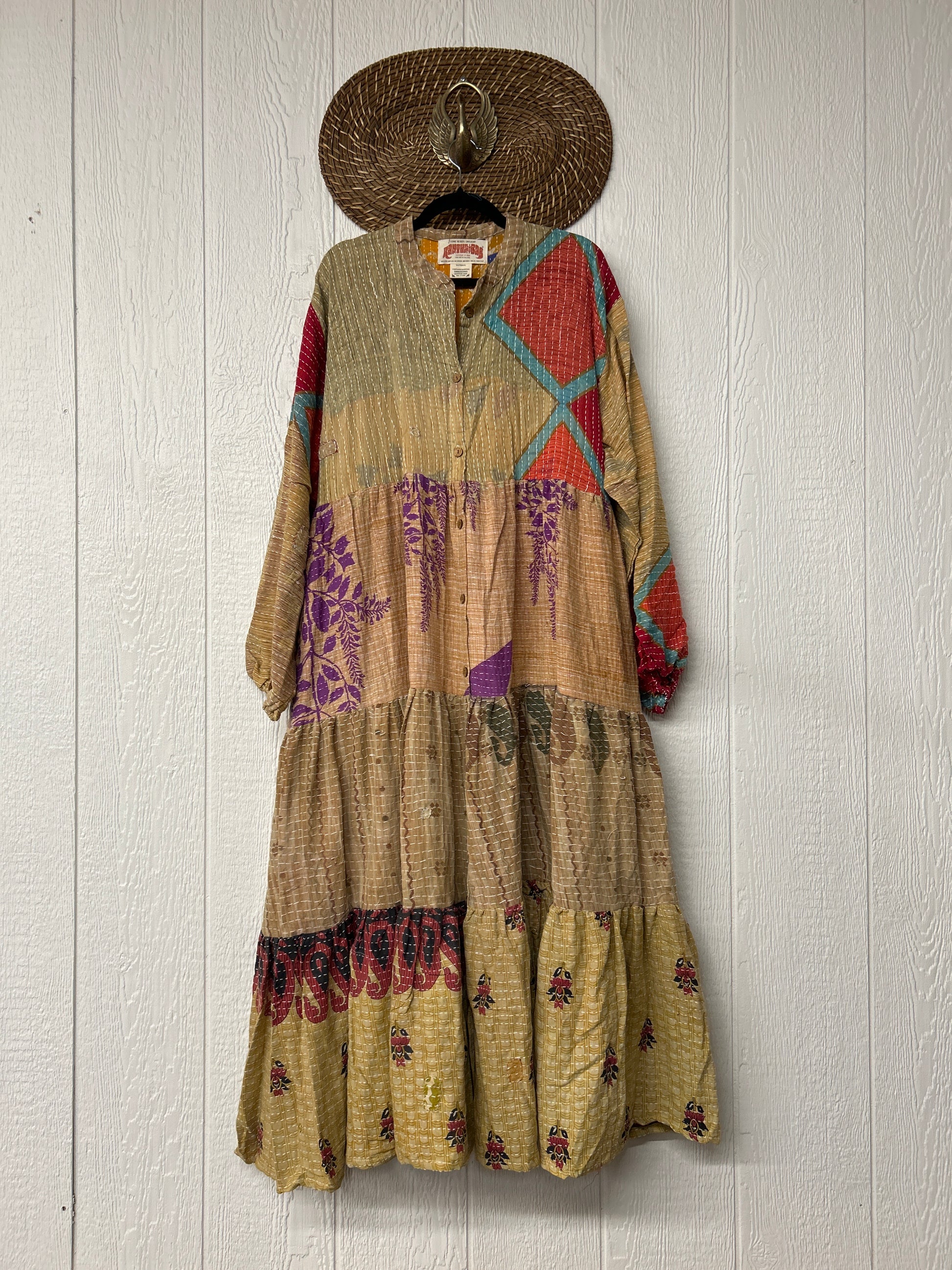 Disclosure: Our vintage styles have lived a full life before becoming the designs in our shop. Fabrics may have small threads or holes in the layers. Color inconsistency or small stains may be present. The saris are sewn together and extend the life of each design.