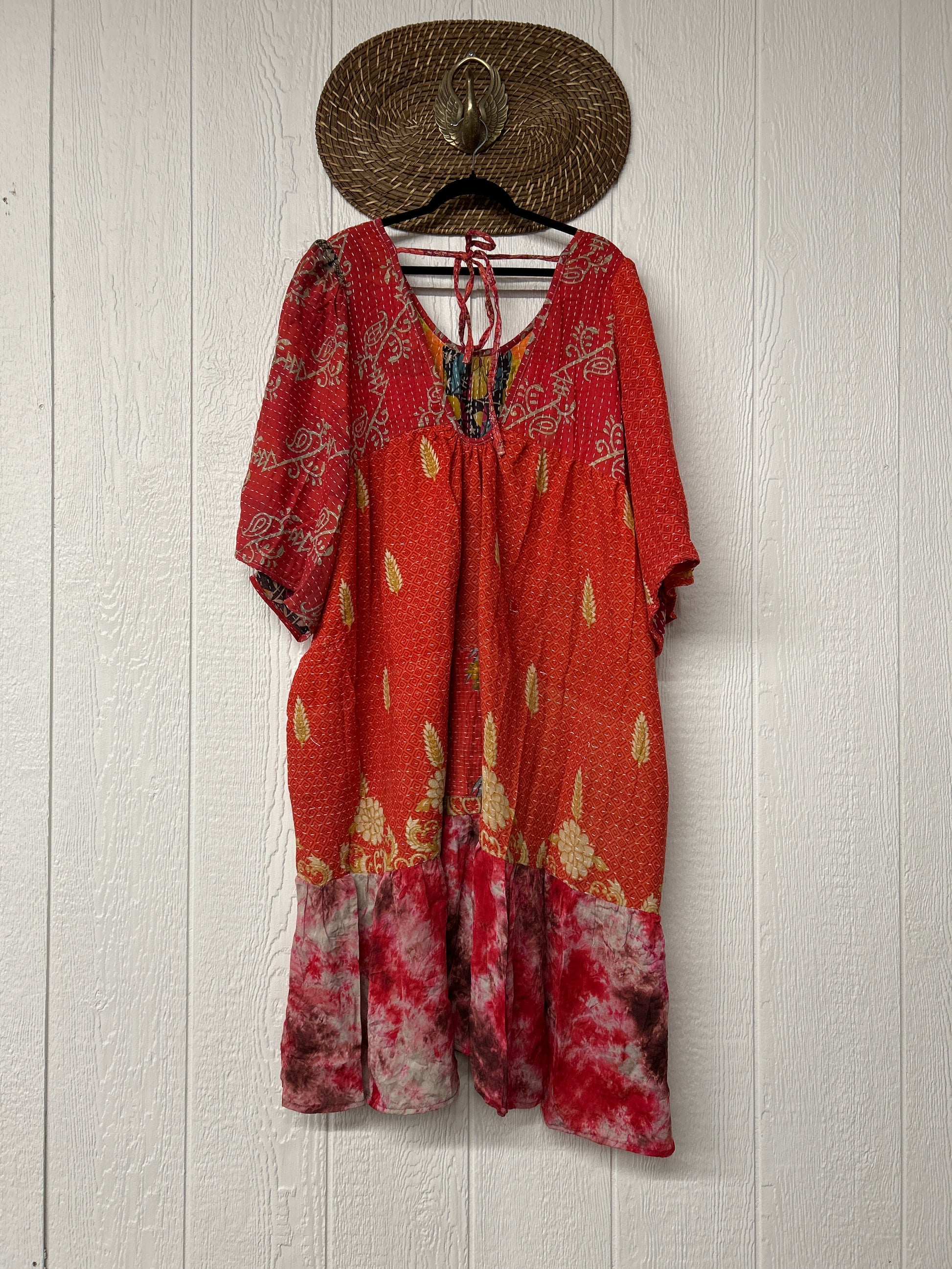 Disclosure: Our vintage styles have lived a full life before becoming the designs in our shop. Fabrics may have small threads or holes in the layers. Color inconsistency or small stains may be present. The saris are sewn together and extend the life of each design. Imperfections should be celebrated.