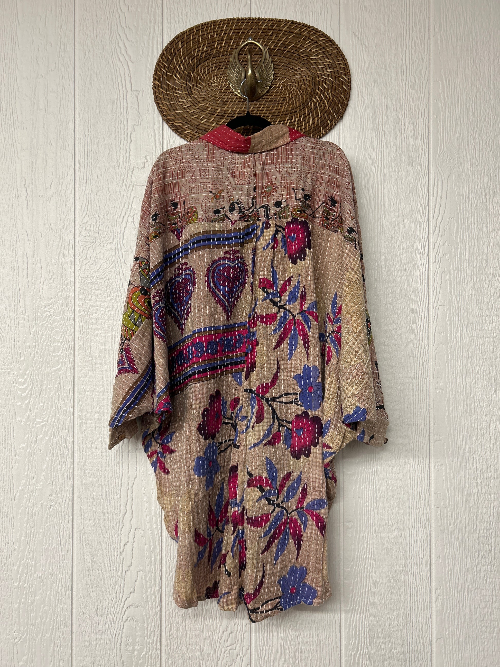 Made from our hand kantha stitched vintage cotton sari, this piece of wearable art features a henley neckline with functional buttons, slouchy outer pockets, billowy sleeves and a rounded hemline. The perfect top to compliment your favorite kantha pants or bell bottoms.