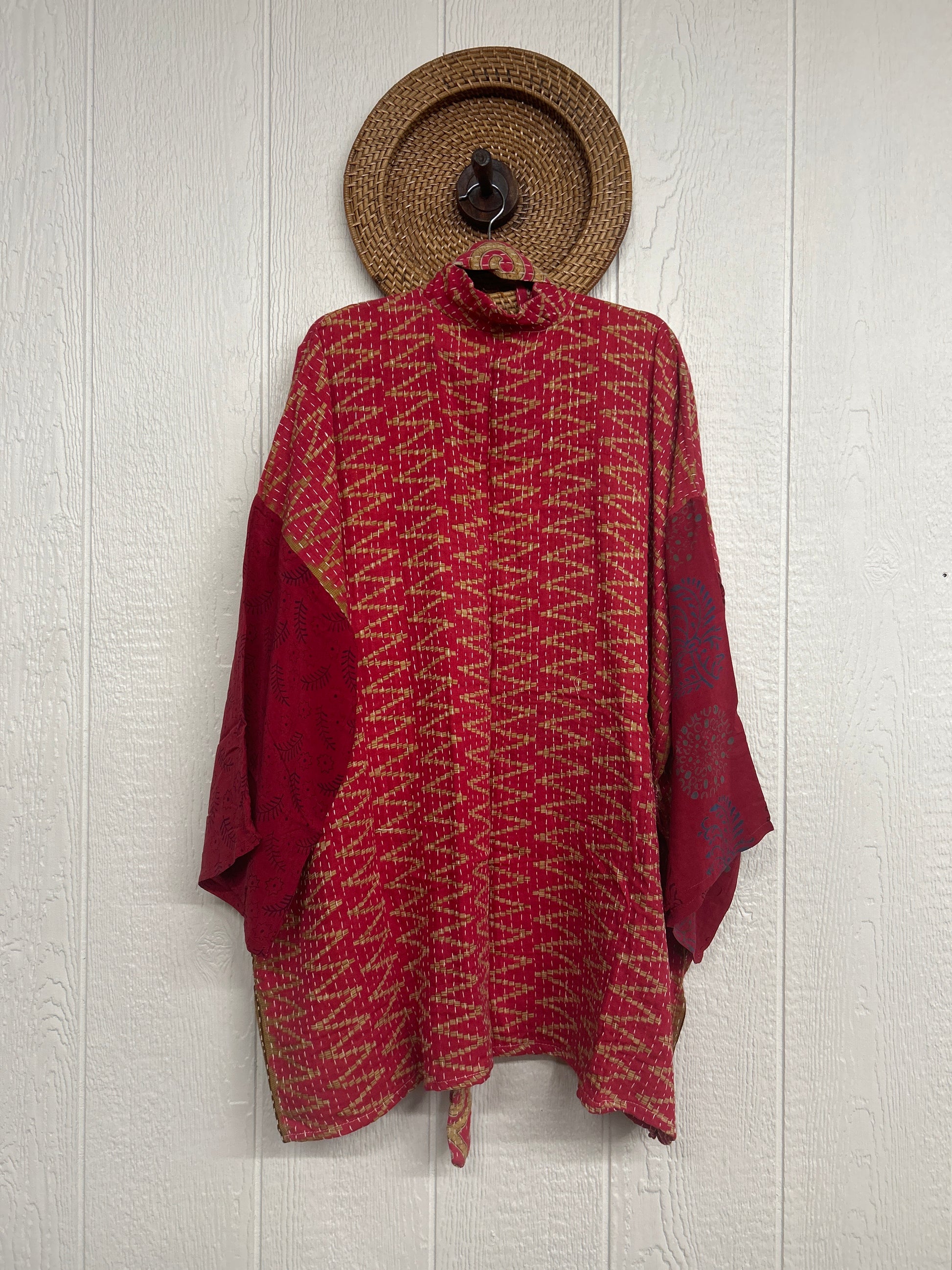 Made from vintage kantha sari this absolute dream piece features vintage crepe sari sleeves, slouchy exterior pockets, a sash closure.