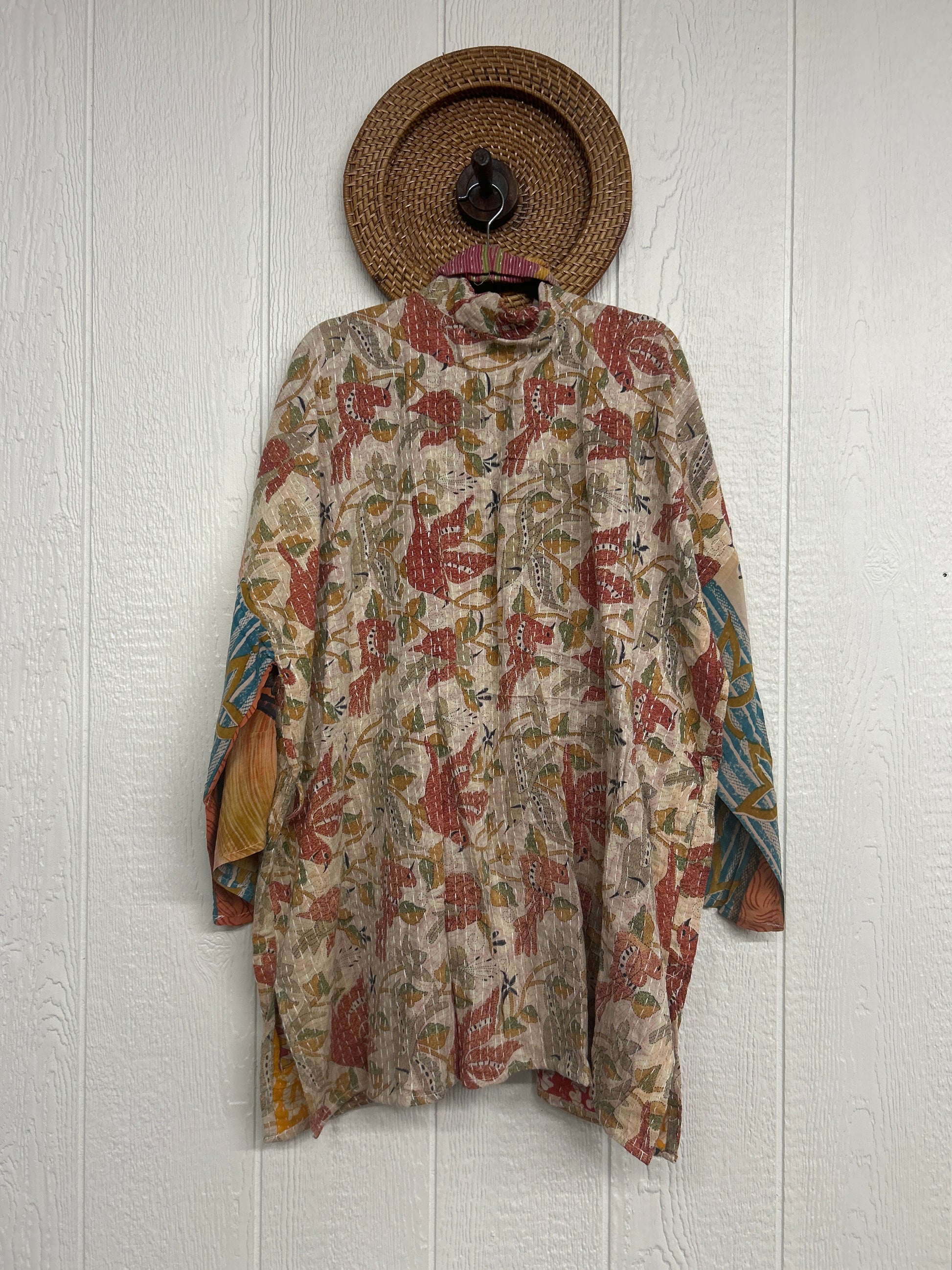 Made from vintage kantha sari this absolute dream piece features vintage crepe sari sleeves, slouchy exterior pockets, a sash closure.