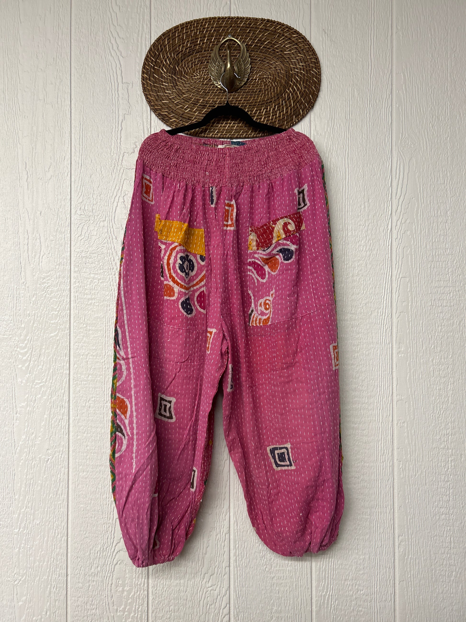 Crafted from our ultra lux kantha stitched vintage cotton sari these pants feature exterior slouchy pockets, a stretchy waistband and an elastic ankle opening. Dress these dream pants up or down to become the ultimate vibe!