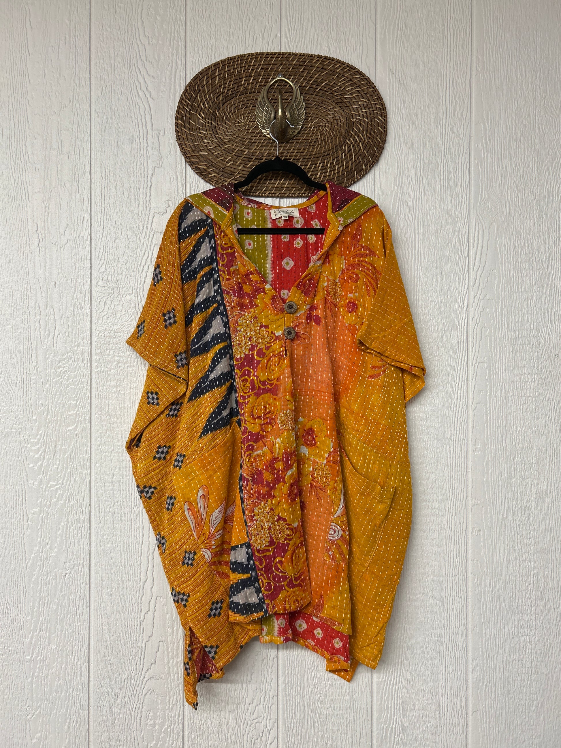 Crafted from our pareo kantha stitched cotton sari this dream peace features a hood, two buttons, two slouchy big pockets and side slits for extra dimension. A timeless transitional piece that will transform any outfit into a lux hippie moment!