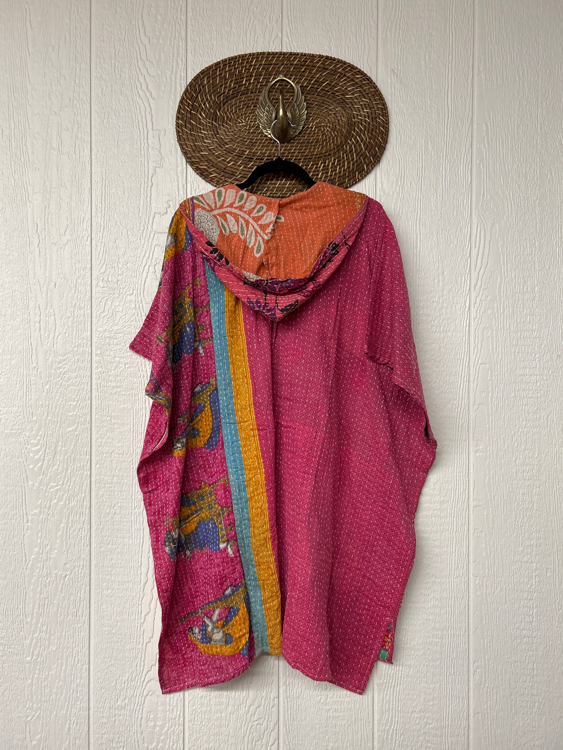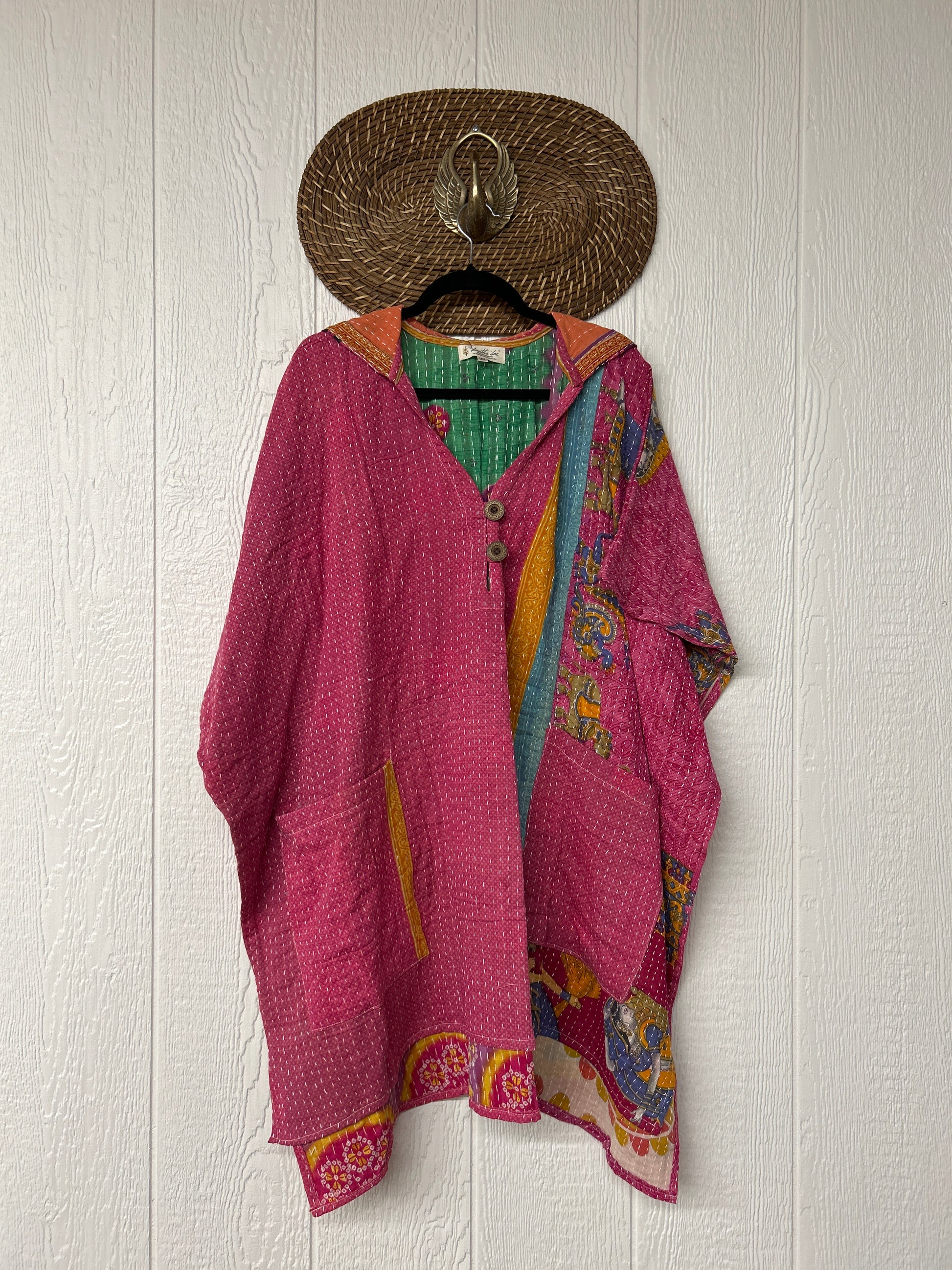Crafted from our pareo kantha stitched cotton sari this dream peace features a hood, two buttons, two slouchy big pockets and side slits for extra dimension. A timeless transitional piece that will transform any outfit into a lux hippie moment!