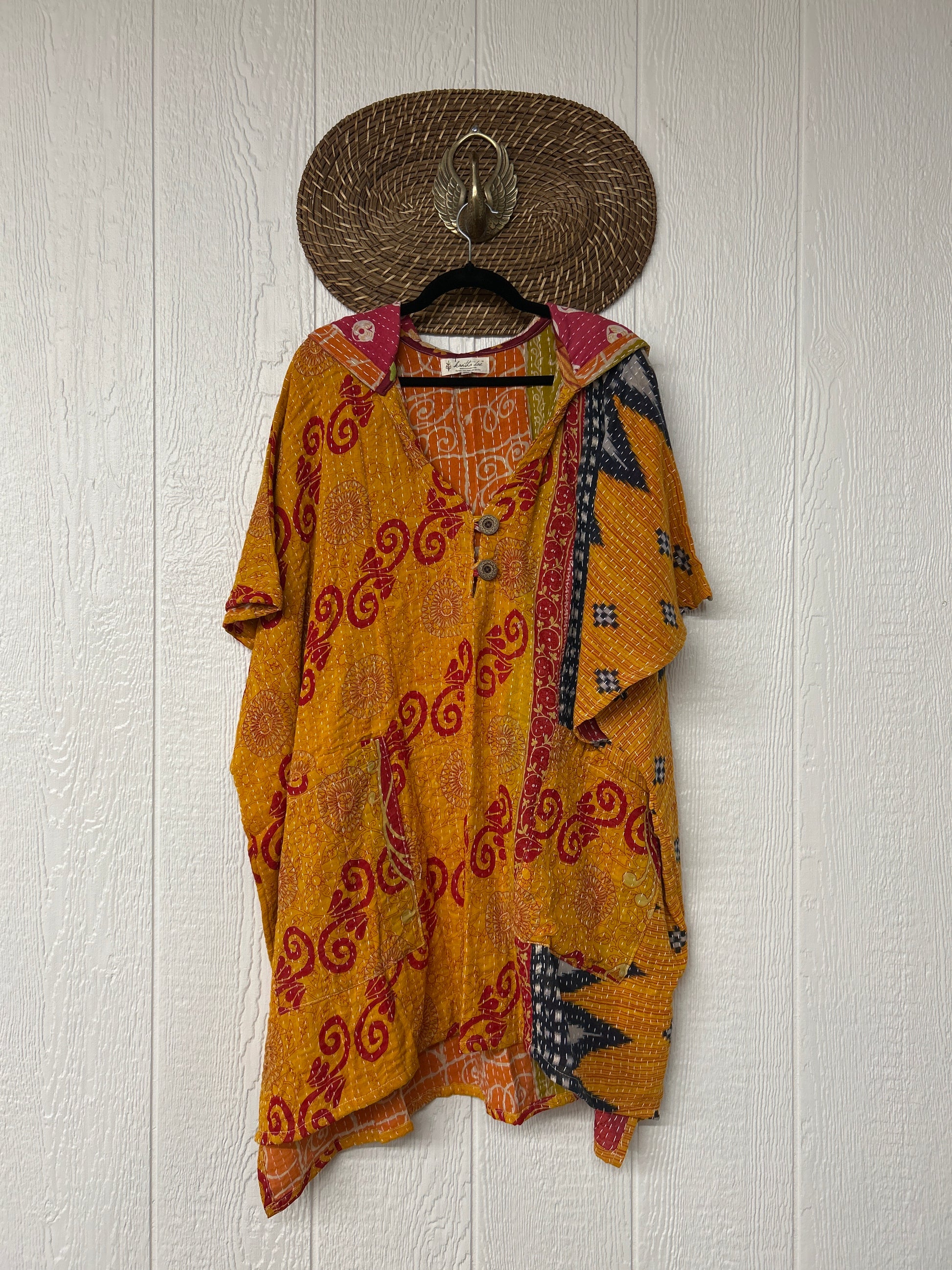 Crafted from our pareo kantha stitched cotton sari this dream peace features a hood, two buttons, two slouchy big pockets and side slits for extra dimension. A timeless transitional piece that will transform any outfit into a lux hippie moment!