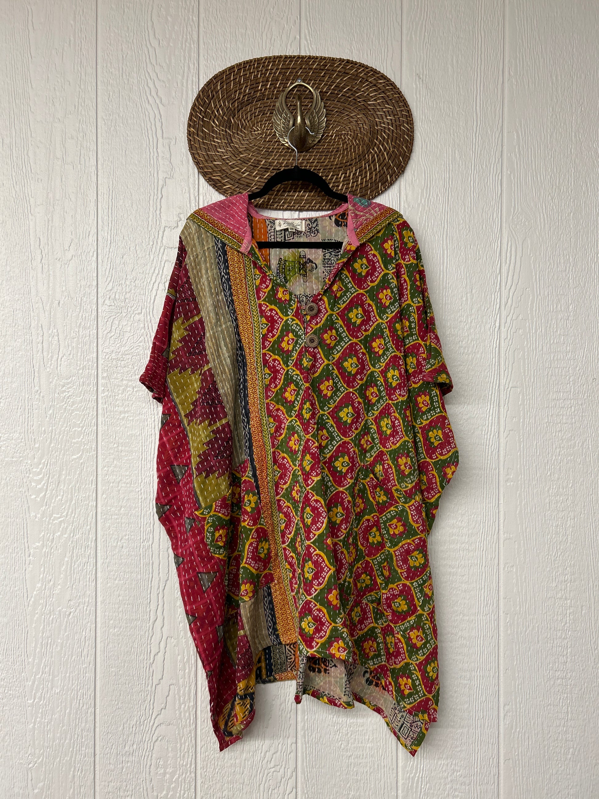 Crafted from our pareo kantha stitched cotton sari this dream peace features a hood, two buttons, two slouchy big pockets and side slits for extra dimension. A timeless transitional piece that will transform any outfit into a lux hippie moment!