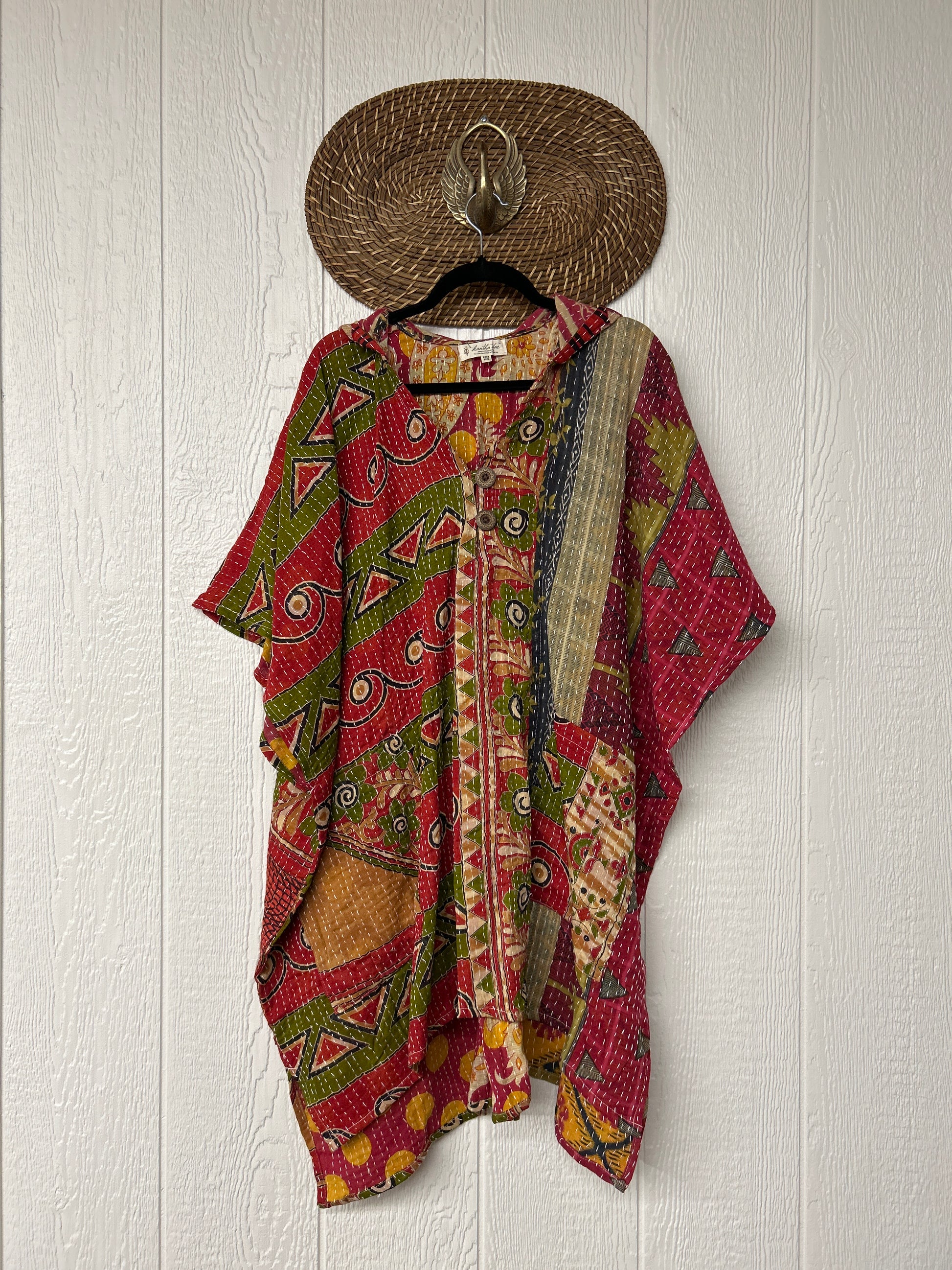 Crafted from our pareo kantha stitched cotton sari this dream peace features a hood, two buttons, two slouchy big pockets and side slits for extra dimension. A timeless transitional piece that will transform any outfit into a lux hippie moment!
