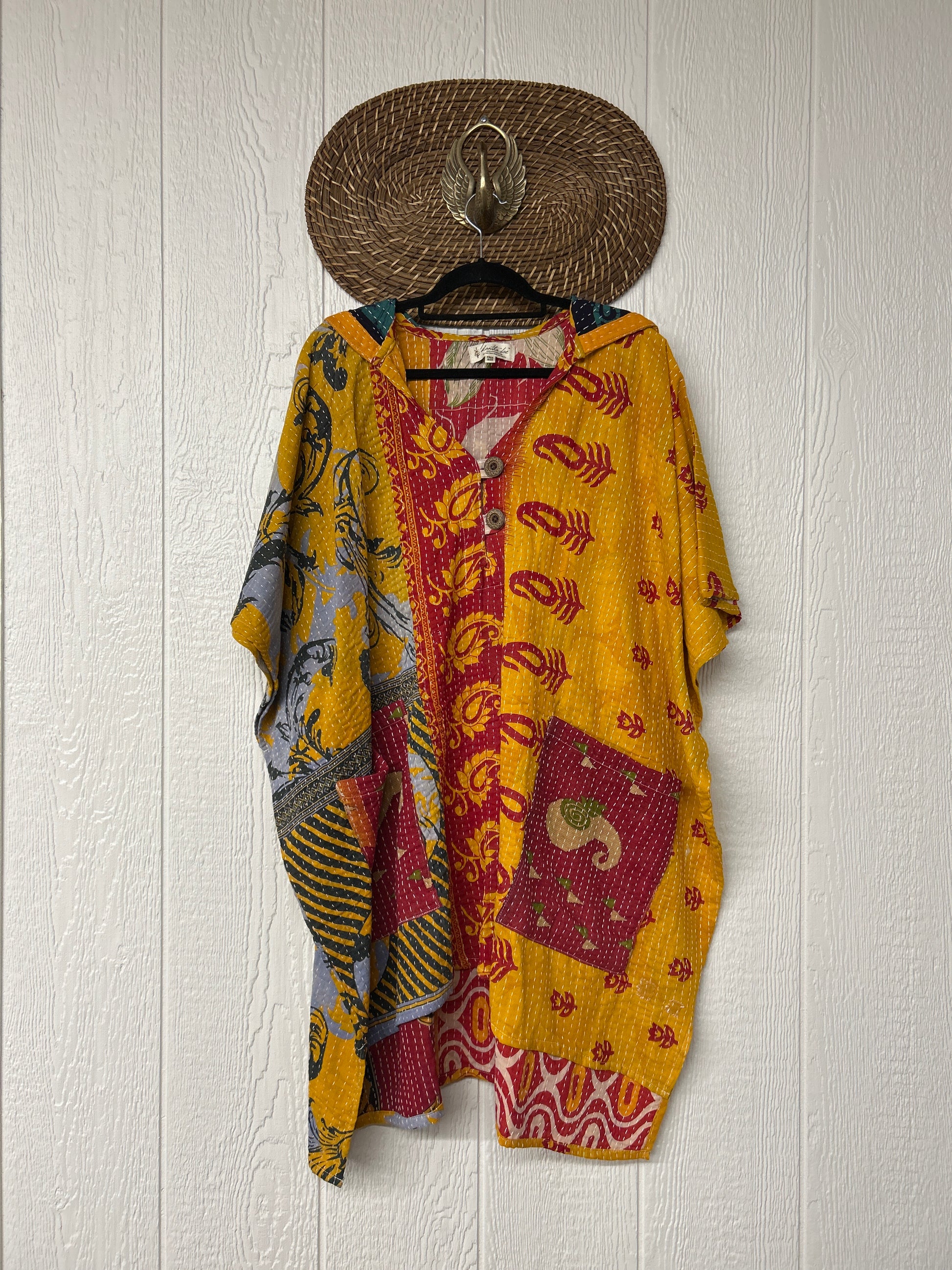 Crafted from our pareo kantha stitched cotton sari this dream peace features a hood, two buttons, two slouchy big pockets and side slits for extra dimension. A timeless transitional piece that will transform any outfit into a lux hippie moment!