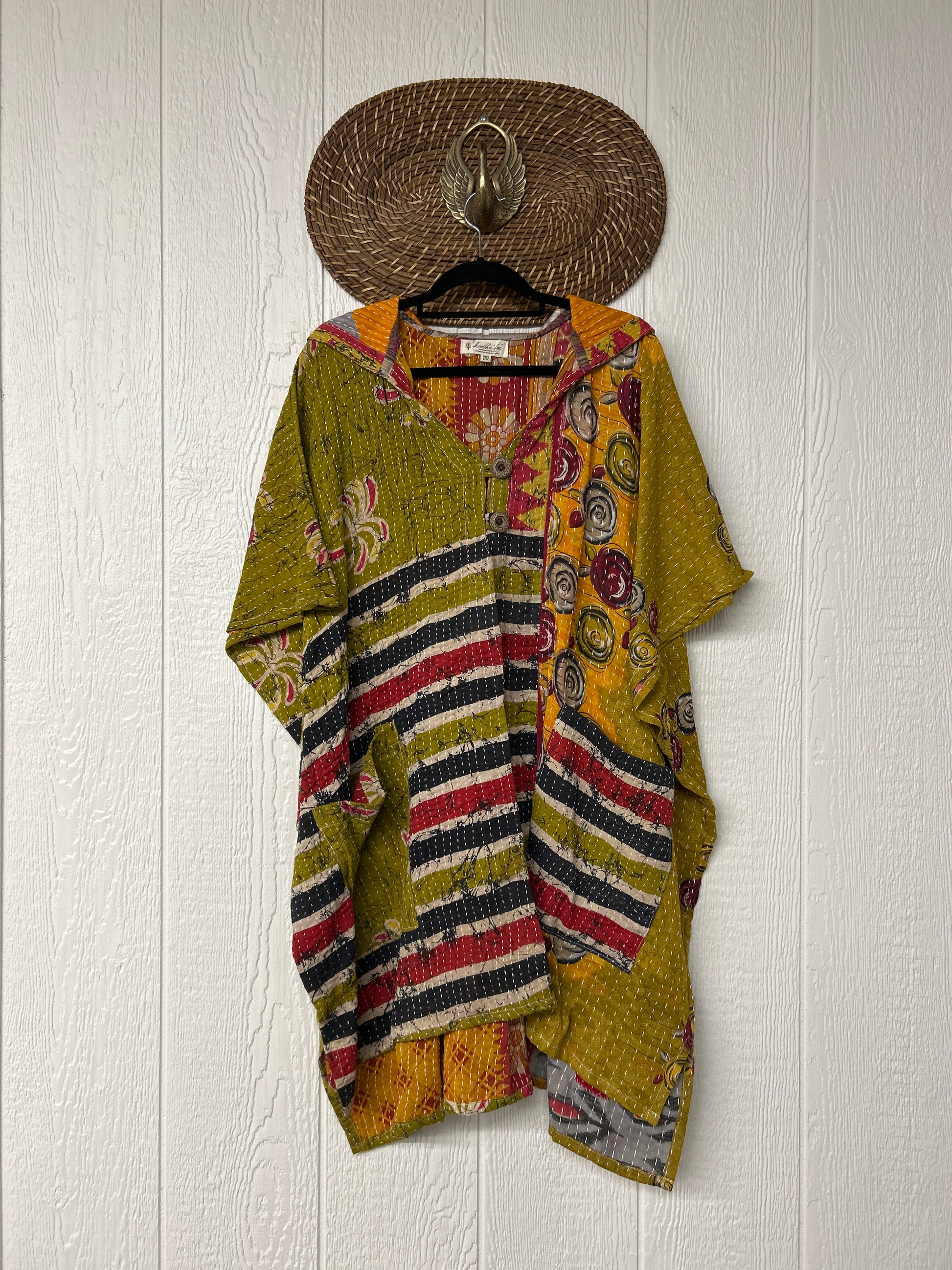 Crafted from our pareo kantha stitched cotton sari this dream peace features a hood, two buttons, two slouchy big pockets and side slits for extra dimension. A timeless transitional piece that will transform any outfit into a lux hippie moment!