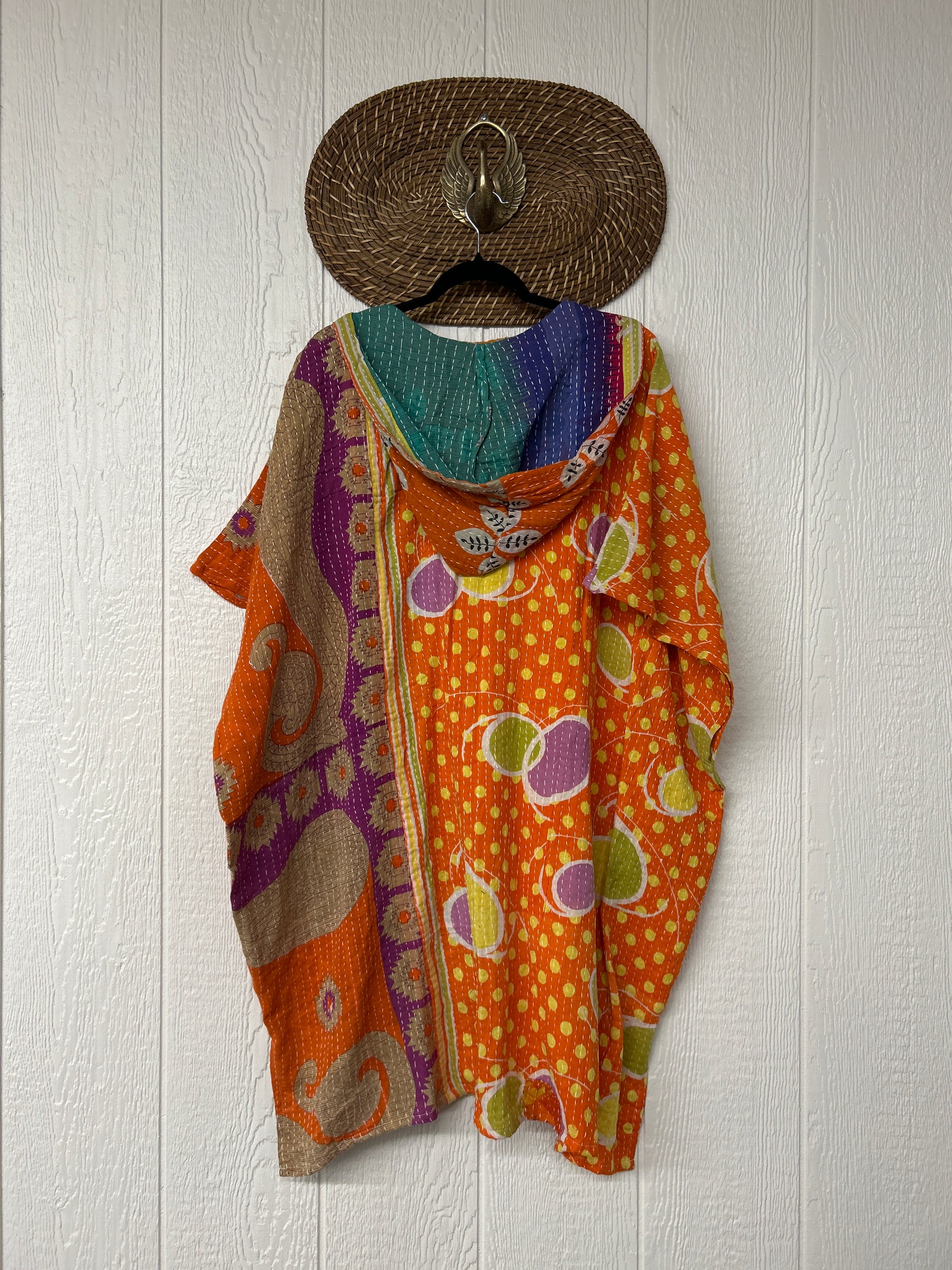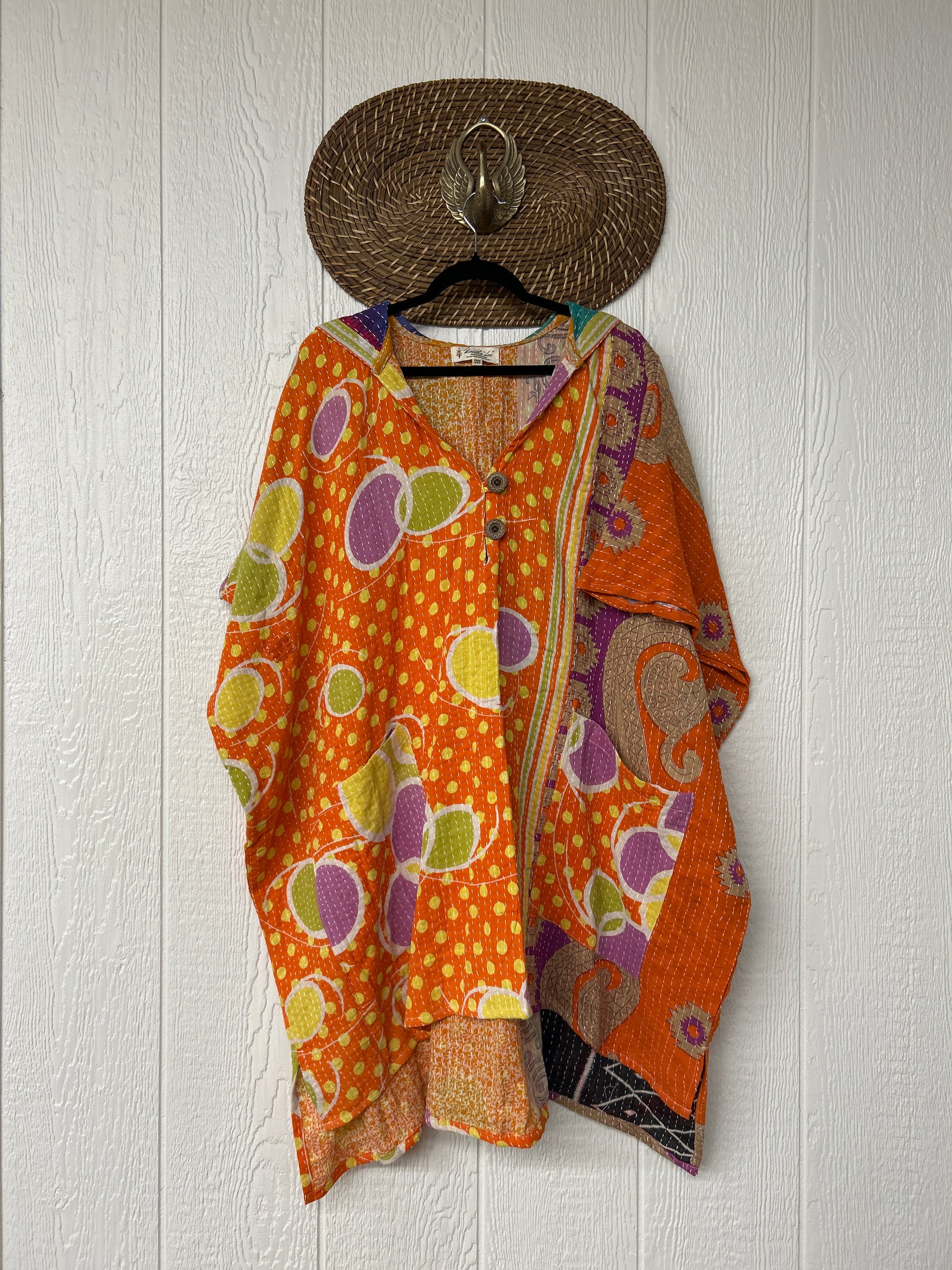 Crafted from our pareo kantha stitched cotton sari this dream peace features a hood, two buttons, two slouchy big pockets and side slits for extra dimension. A timeless transitional piece that will transform any outfit into a lux hippie moment!