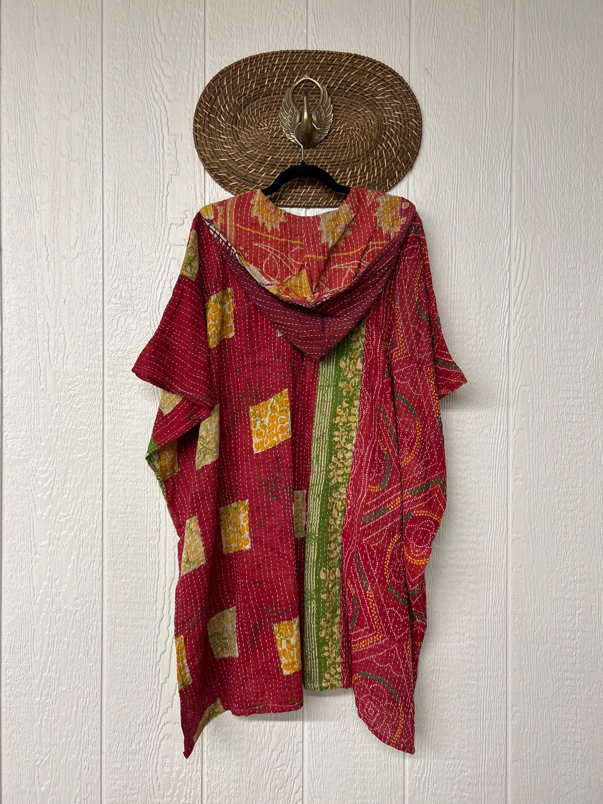 Crafted from our pareo kantha stitched cotton sari this dream peace features a hood, two buttons, two slouchy big pockets and side slits for extra dimension. A timeless transitional piece that will transform any outfit into a lux hippie moment!