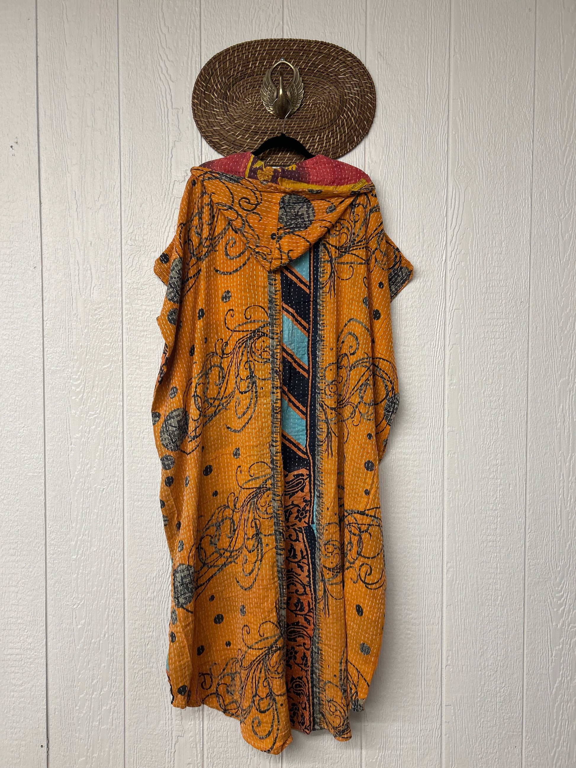 Disclosure: Our vintage styles have lived a full life before becoming the designs in our shop. Fabrics may have small threads or holes in the layers. Color inconsistency or small stains may be present. The saris are sewn together and extend the life of each design. Imperfections should be celebrated