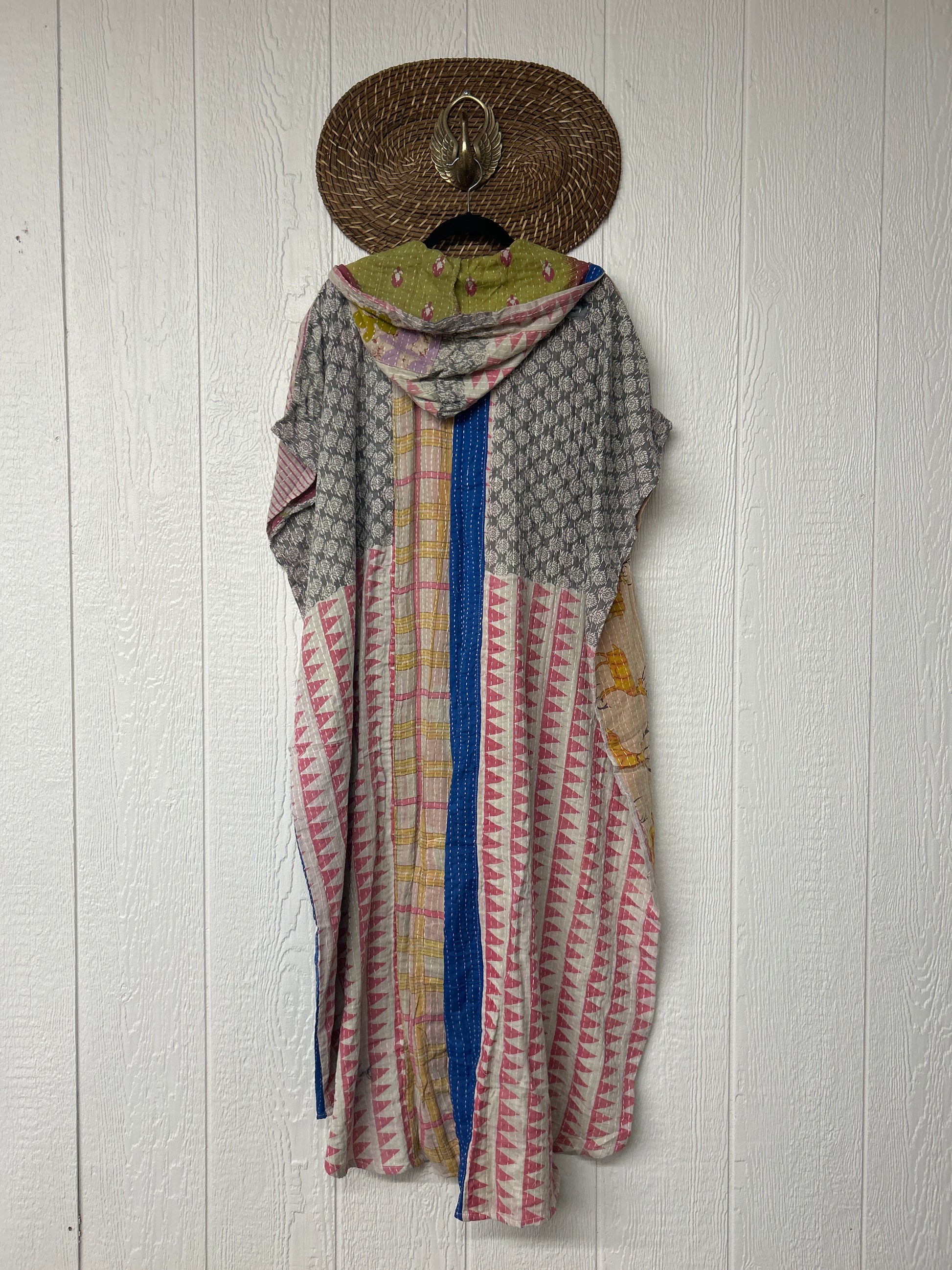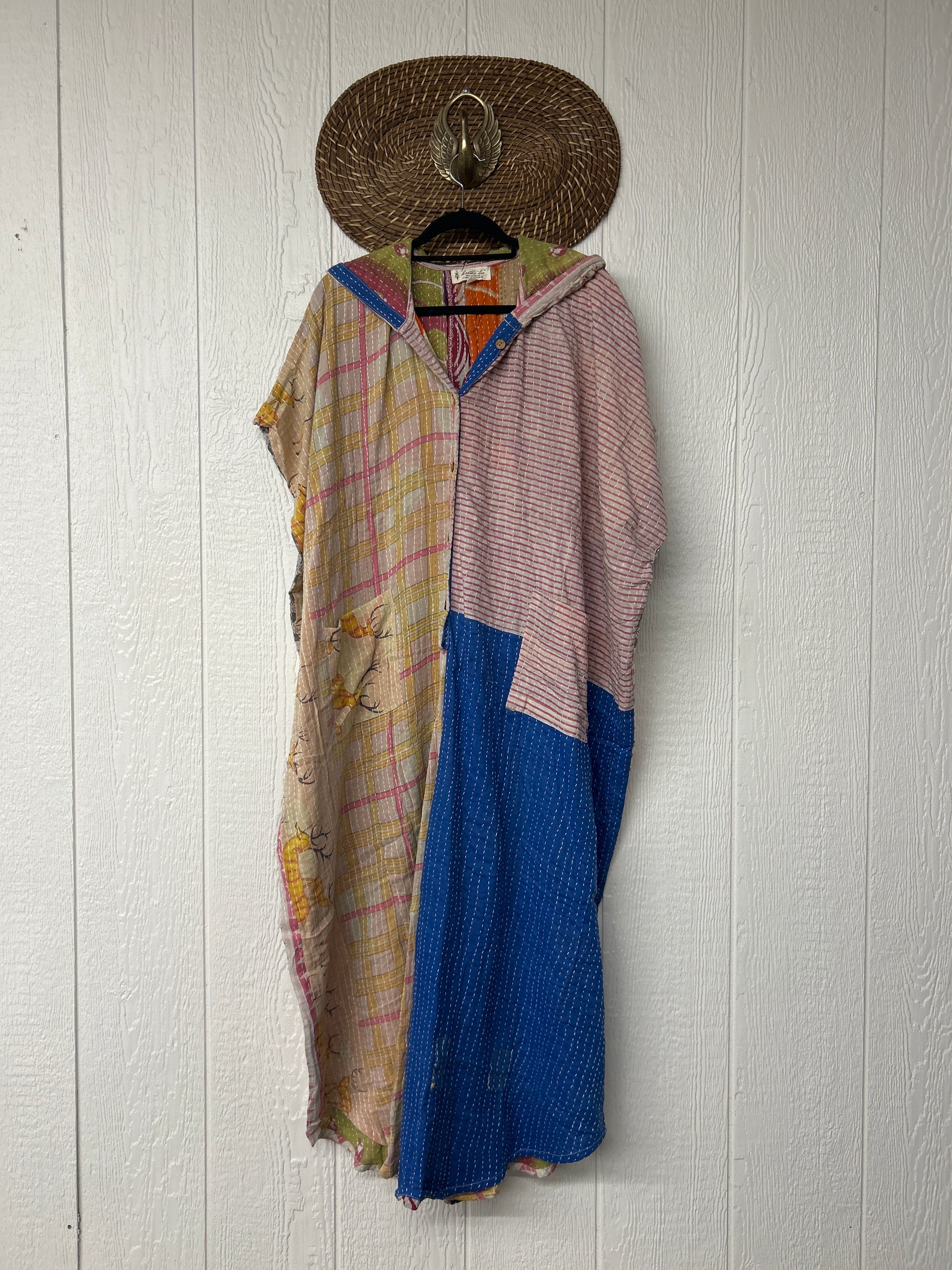 Made from our hand Kantha stitched cotton sari, this one piece wonder features a hood, front button-down closure, pockets, and super flowy pant legs..