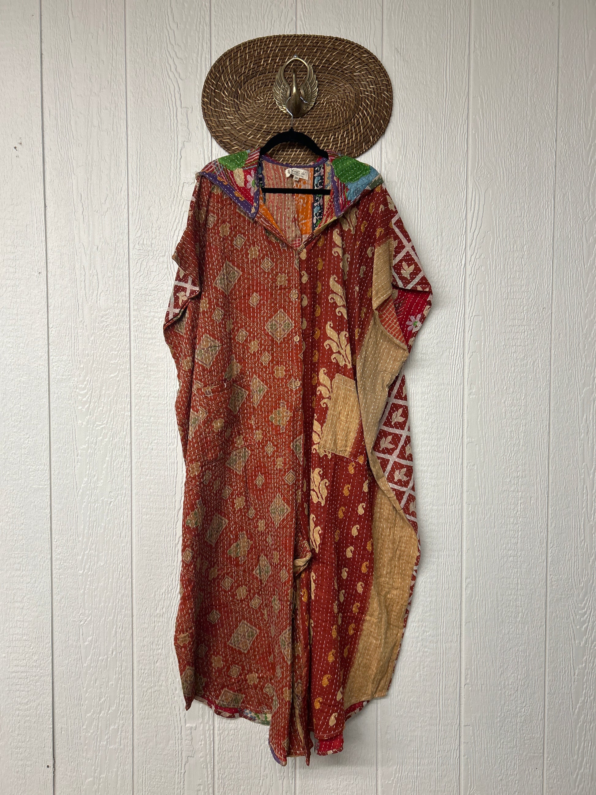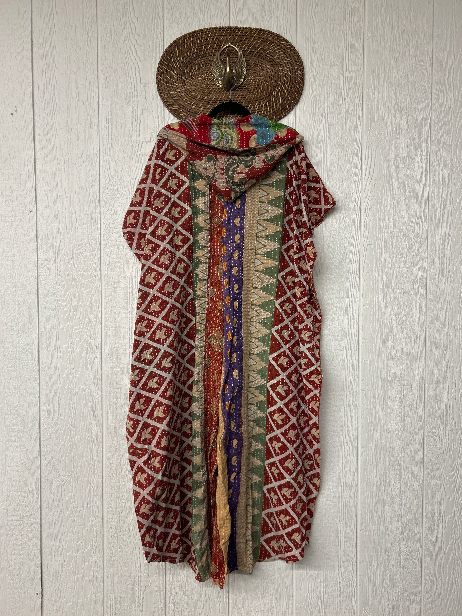Made from our hand Kantha stitched cotton sari, this one piece wonder features a hood, front button-down closure, pockets, and super flowy pant legs..