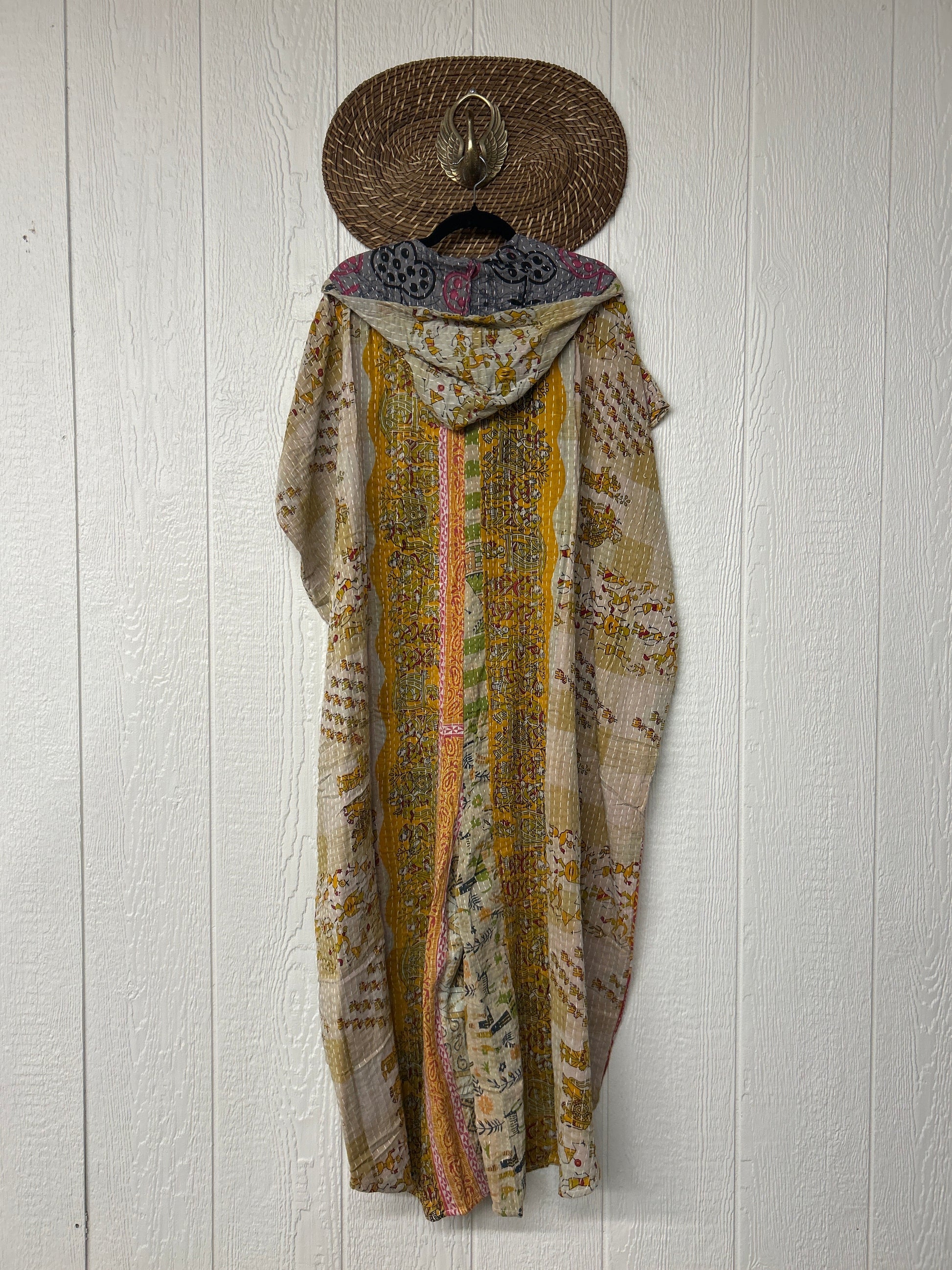 Made from our hand Kantha stitched cotton sari, this one piece wonder features a hood, front button-down closure, pockets, and super flowy pant legs..