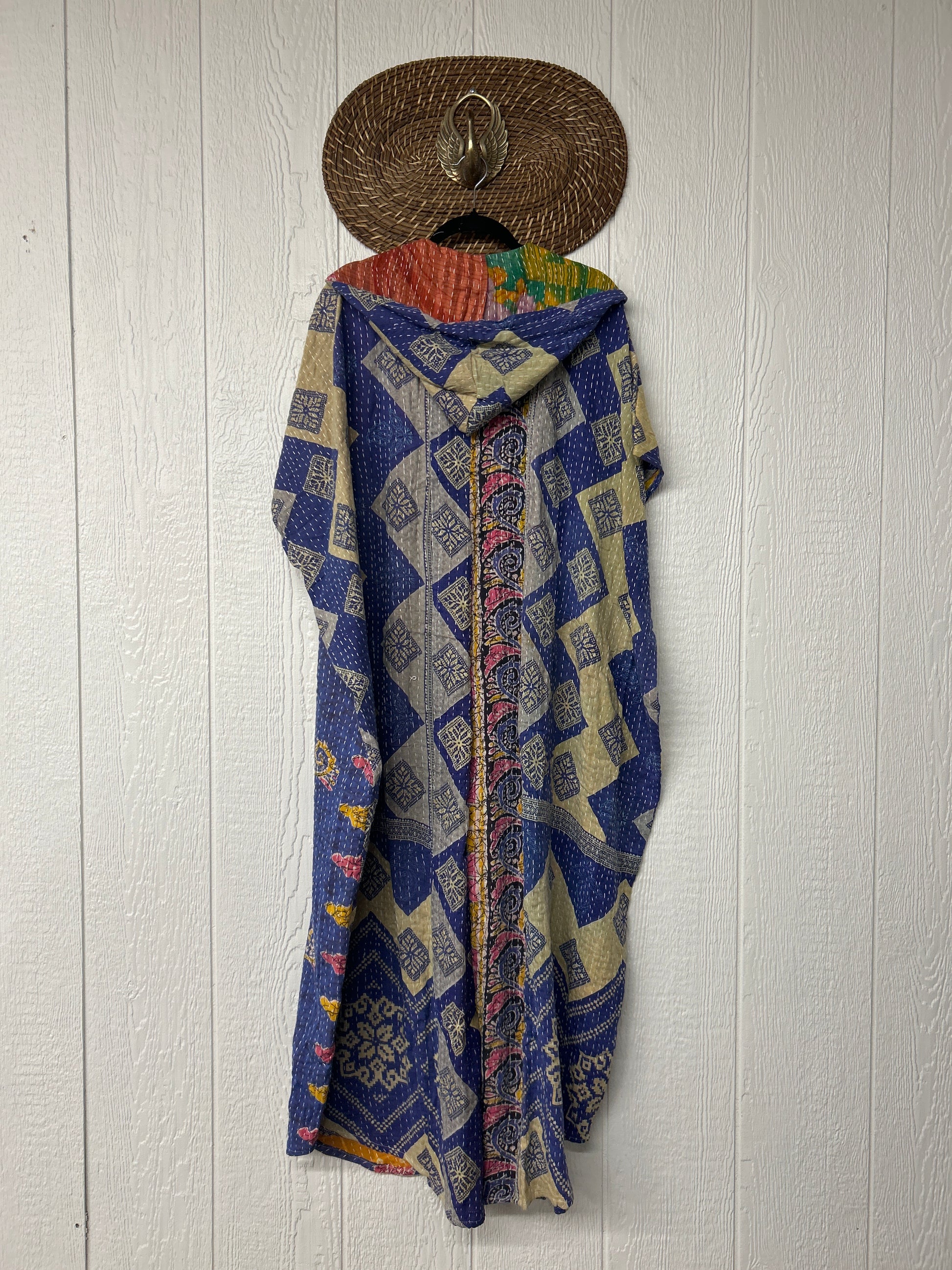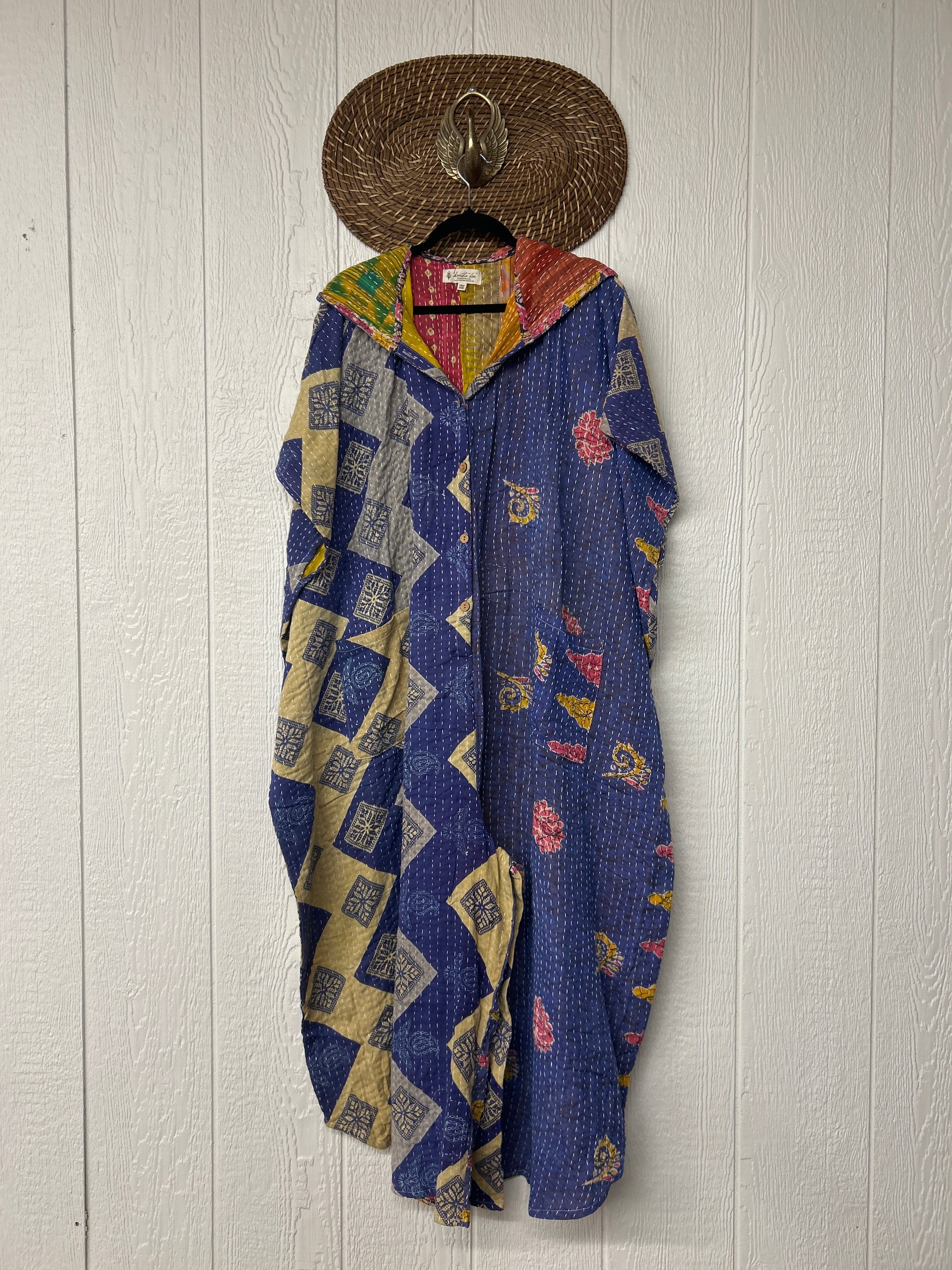 Made from our hand Kantha stitched cotton sari, this one piece wonder features a hood, front button-down closure, pockets, and super flowy pant legs..