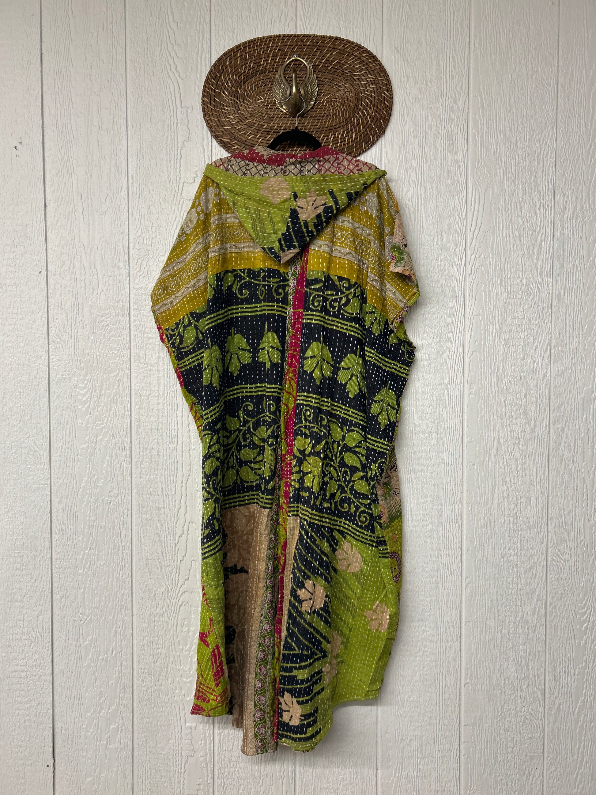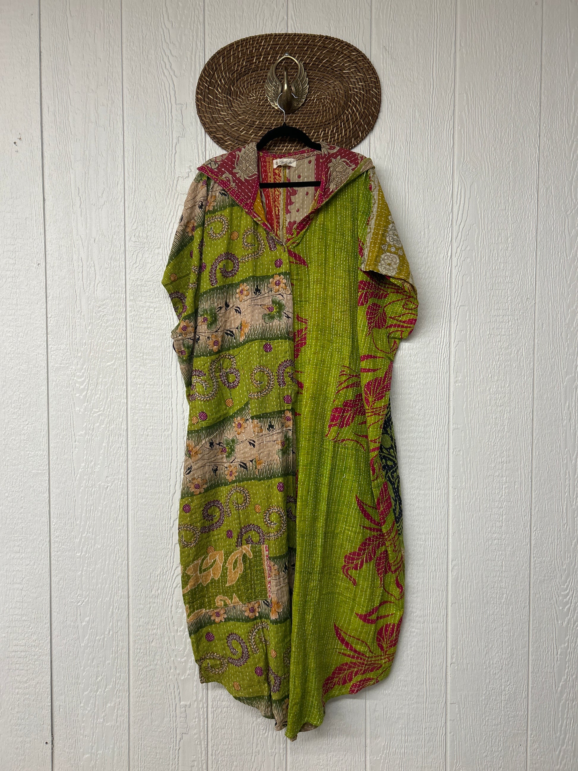 Made from our hand Kantha stitched cotton sari, this one piece wonder features a hood, front button-down closure, pockets, and super flowy pant legs..