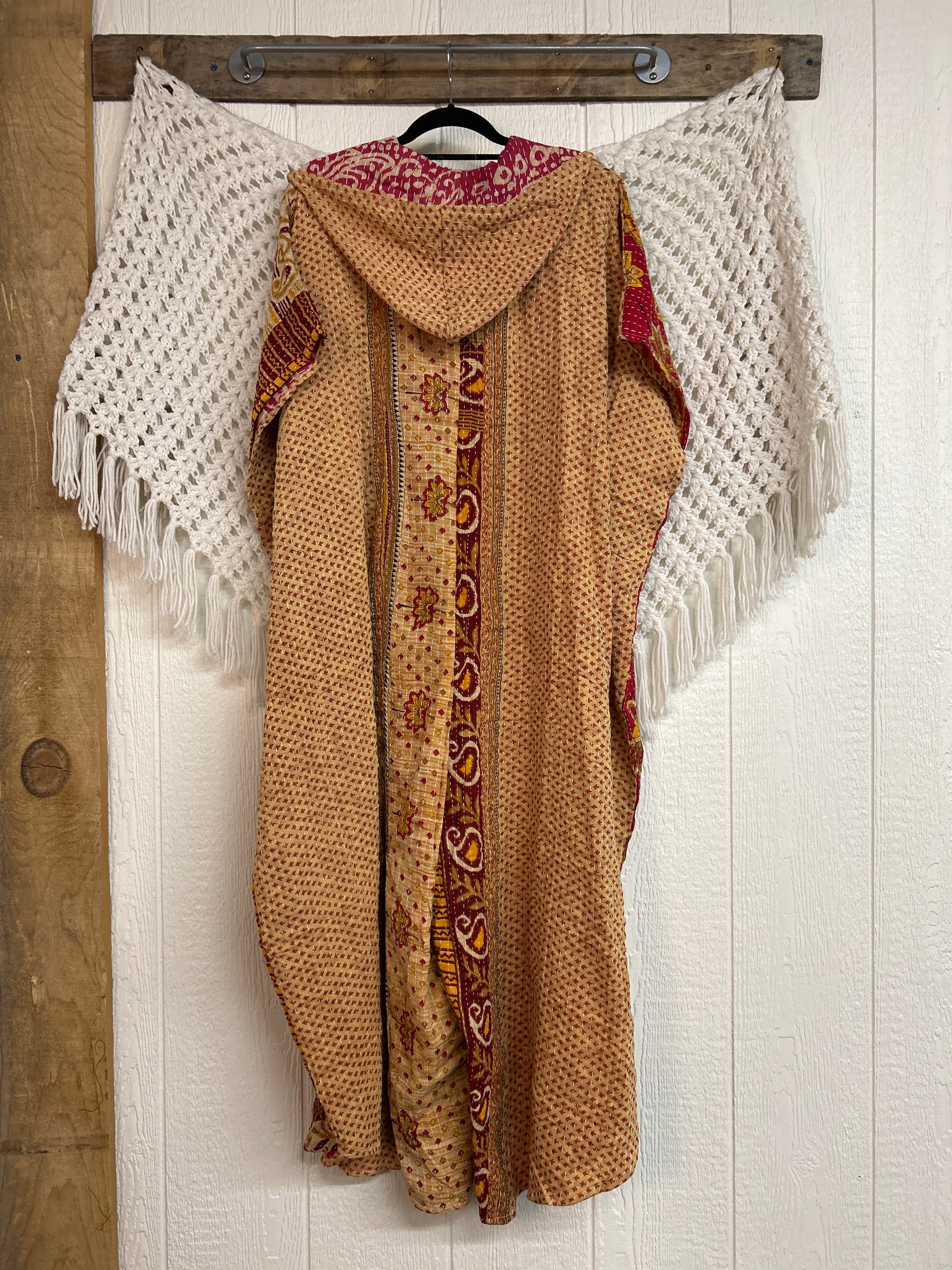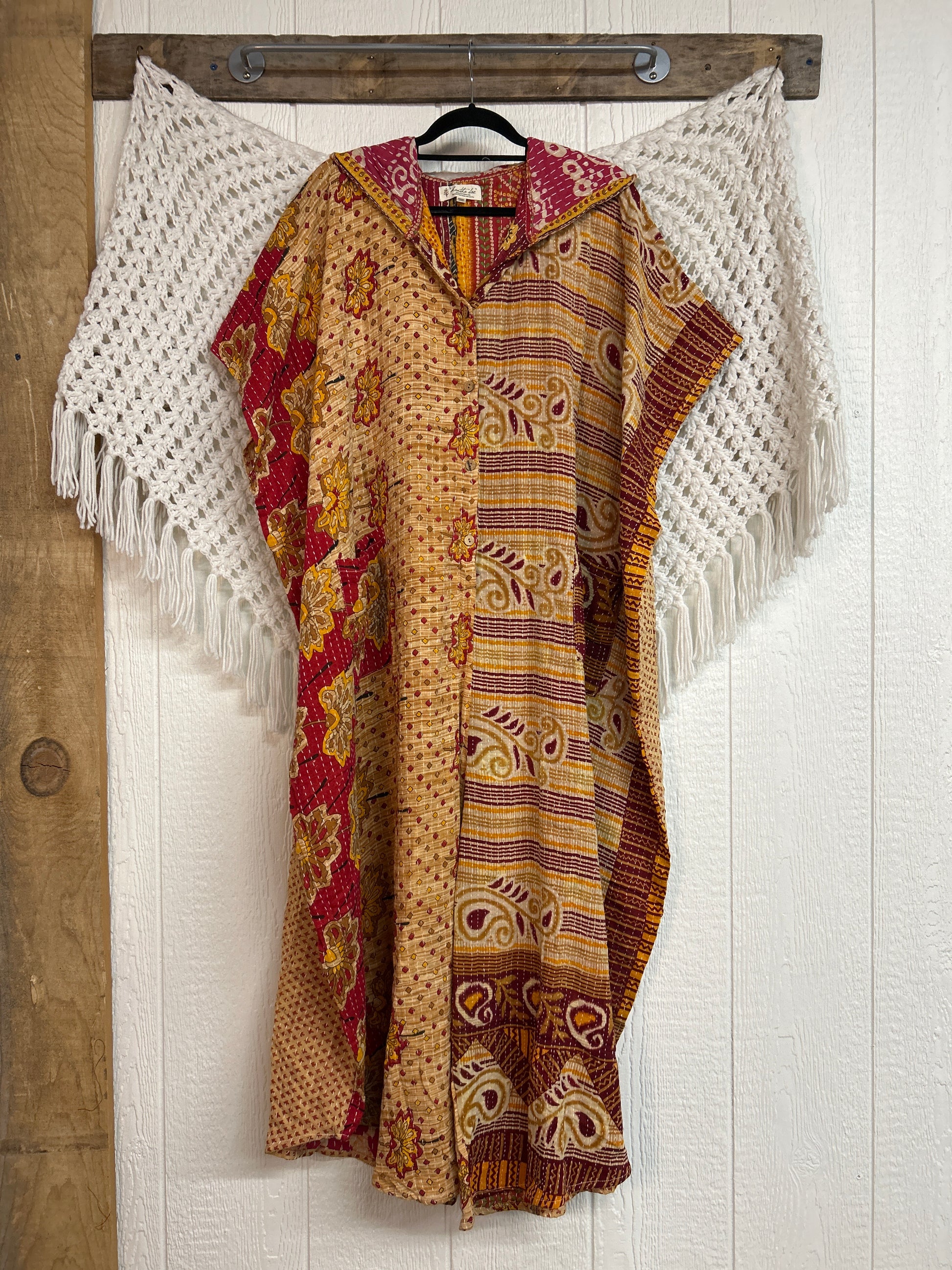 Disclosure: Our vintage styles have lived a full life before becoming the designs in our shop. Fabrics may have small threads or holes in the layers. Color inconsistency or small stains may be present. The saris are sewn together and extend the life of each design. Imperfections should be celebrated