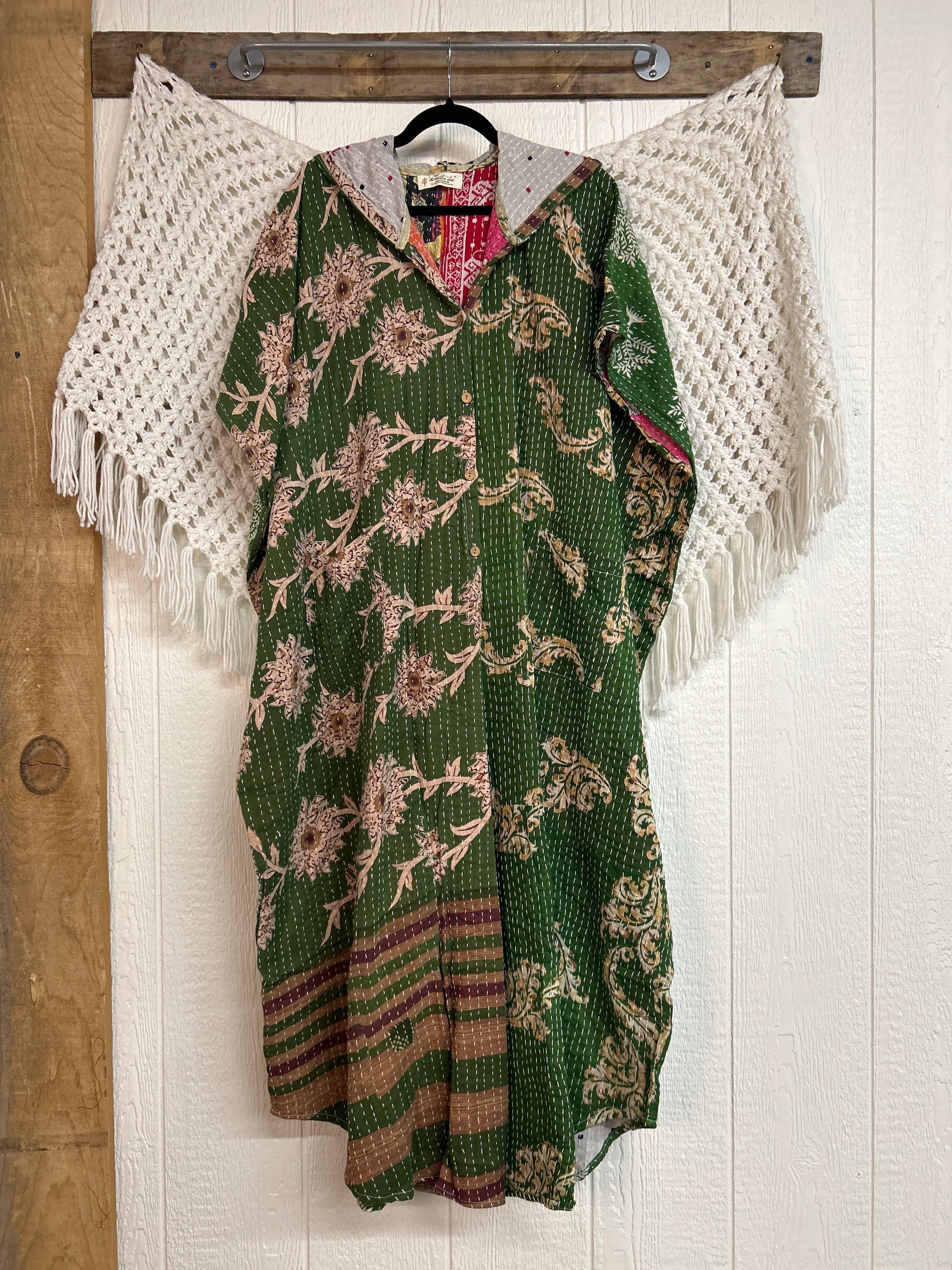 Disclosure: Our vintage styles have lived a full life before becoming the designs in our shop. Fabrics may have small threads or holes in the layers. Color inconsistency or small stains may be present. The saris are sewn together and extend the life of each design. Imperfections should be celebrated