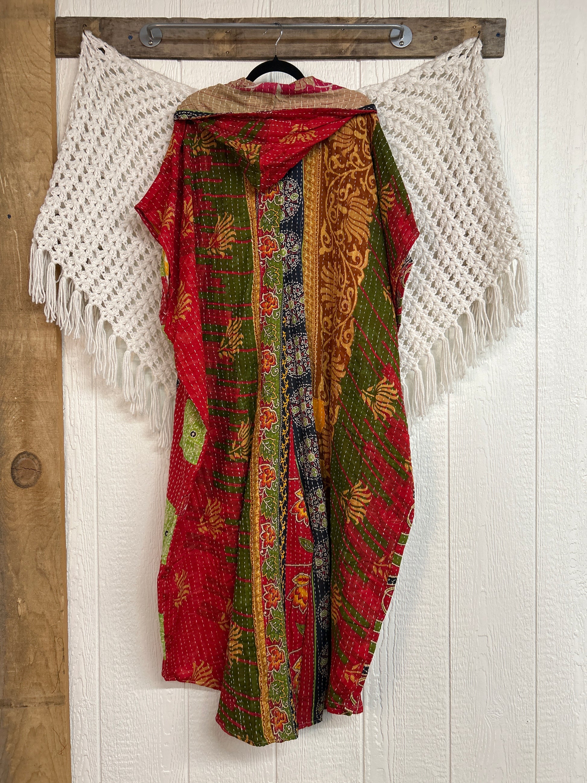 Disclosure: Our vintage styles have lived a full life before becoming the designs in our shop. Fabrics may have small threads or holes in the layers. Color inconsistency or small stains may be present. The saris are sewn together and extend the life of each design. Imperfections should be celebrated