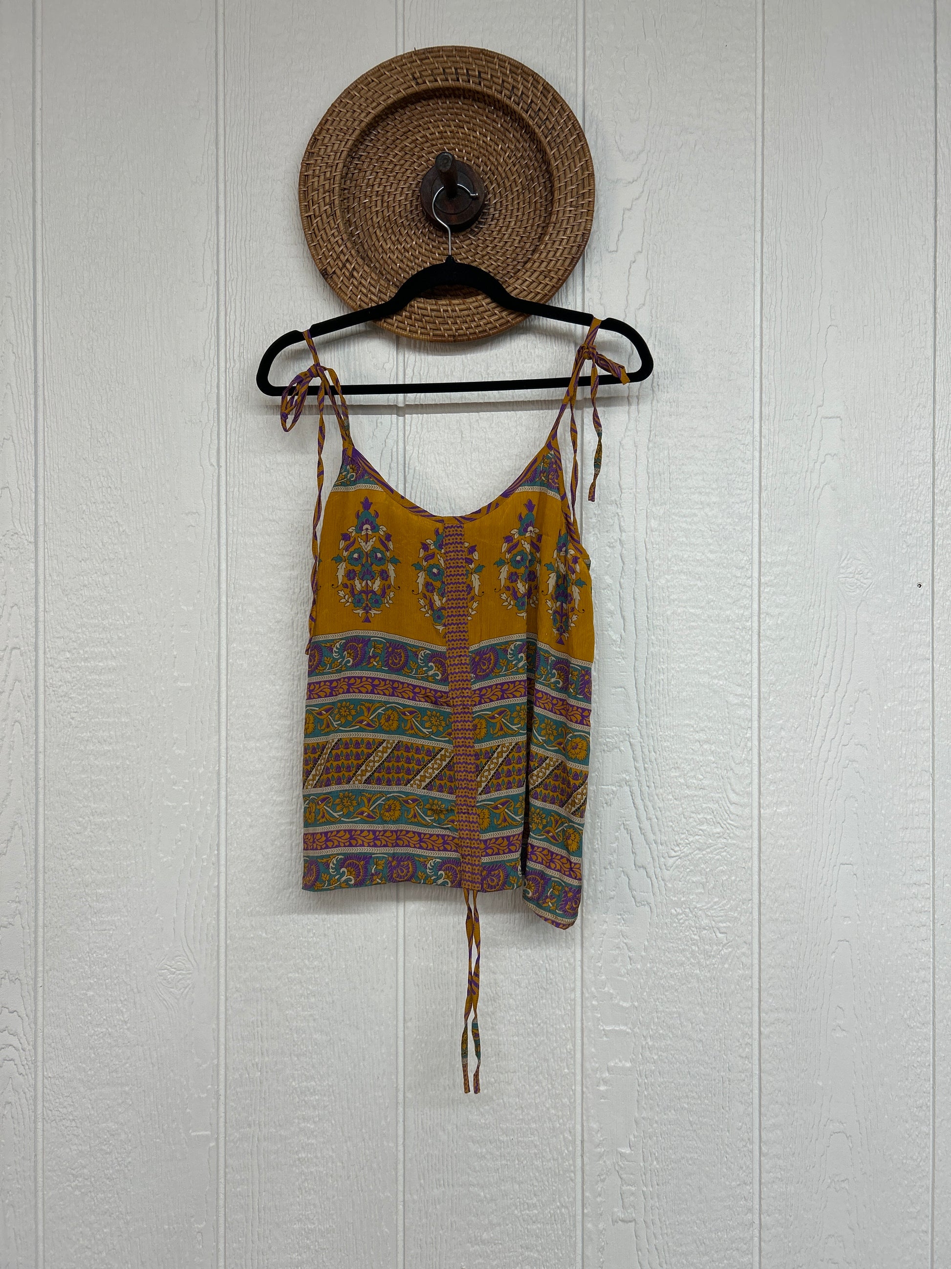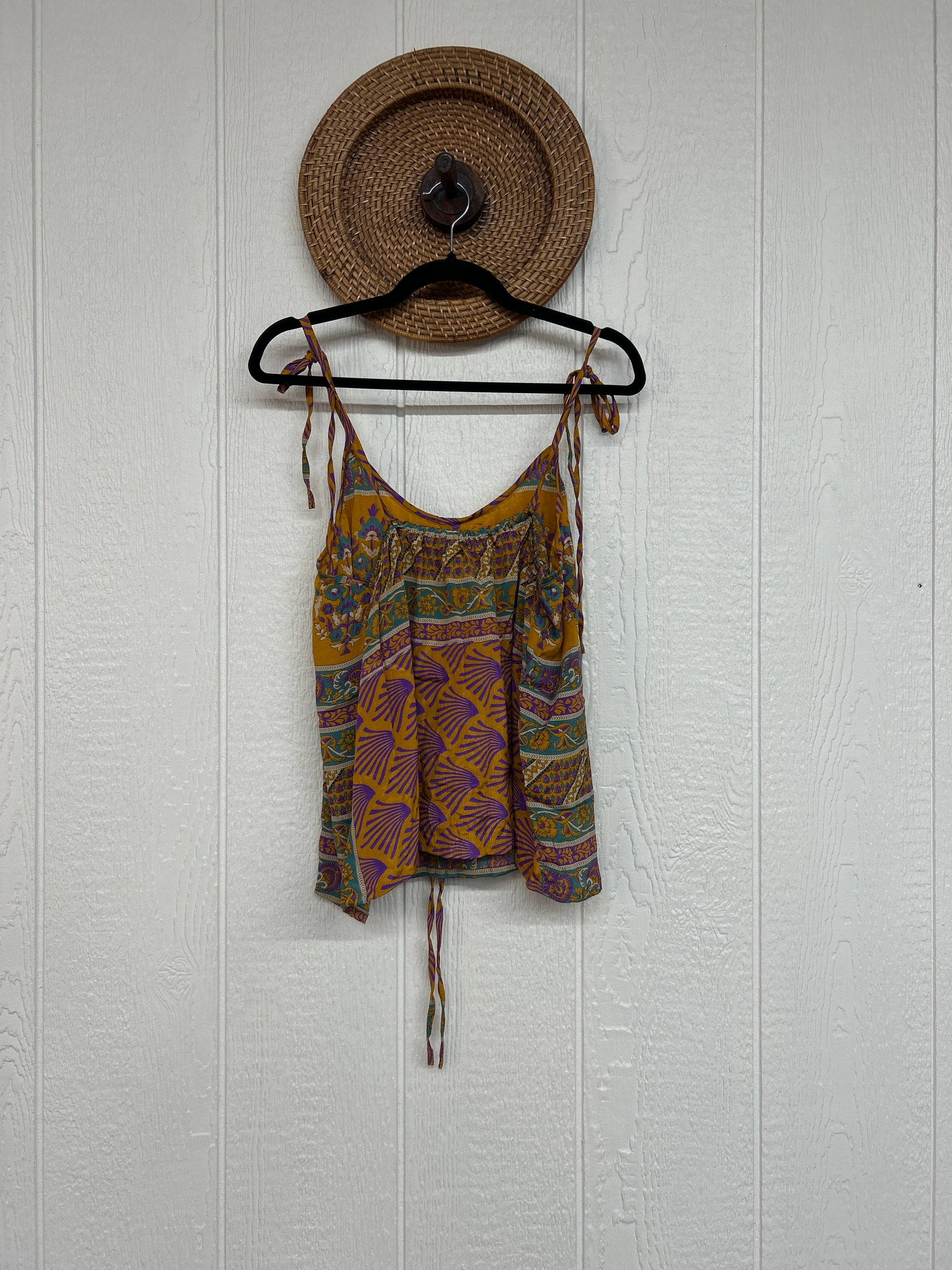 Our Rasgulla Butterfly Tank Top Features adjustable tie straps and a cinch front tie in the front which makes the top customizable for any of your favorite bottoms. Crafted from our ultra lux rasgulla silk this dreamy top is bound to be your new vibey go to! The back also features stretchy elastic for added comfort.