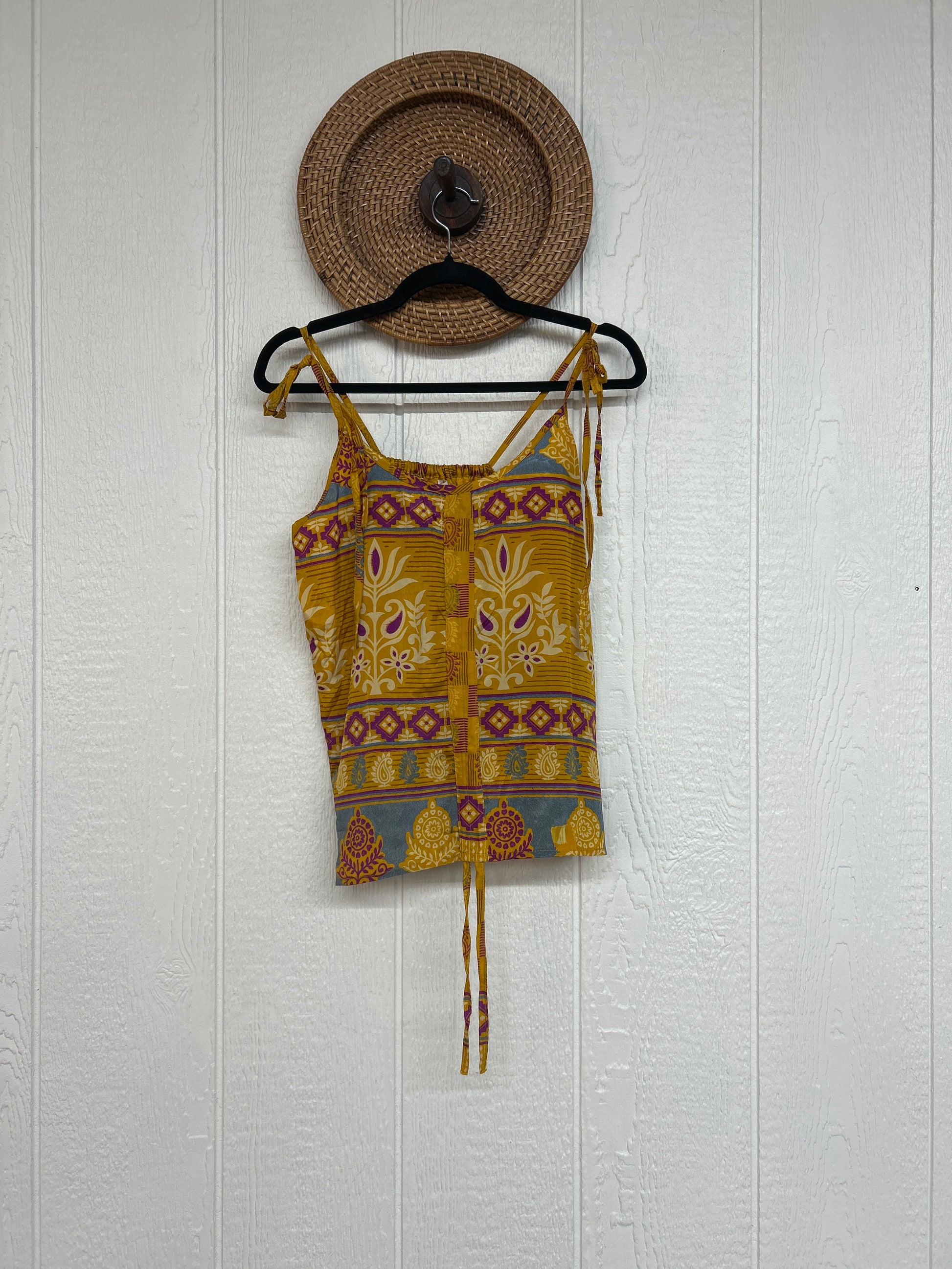 Our Rasgulla Butterfly Tank Top Features adjustable tie straps and a cinch front tie in the front which makes the top customizable for any of your favorite bottoms. Crafted from our ultra lux rasgulla silk this dreamy top is bound to be your new vibey go to! The back also features stretchy elastic for added comfort.