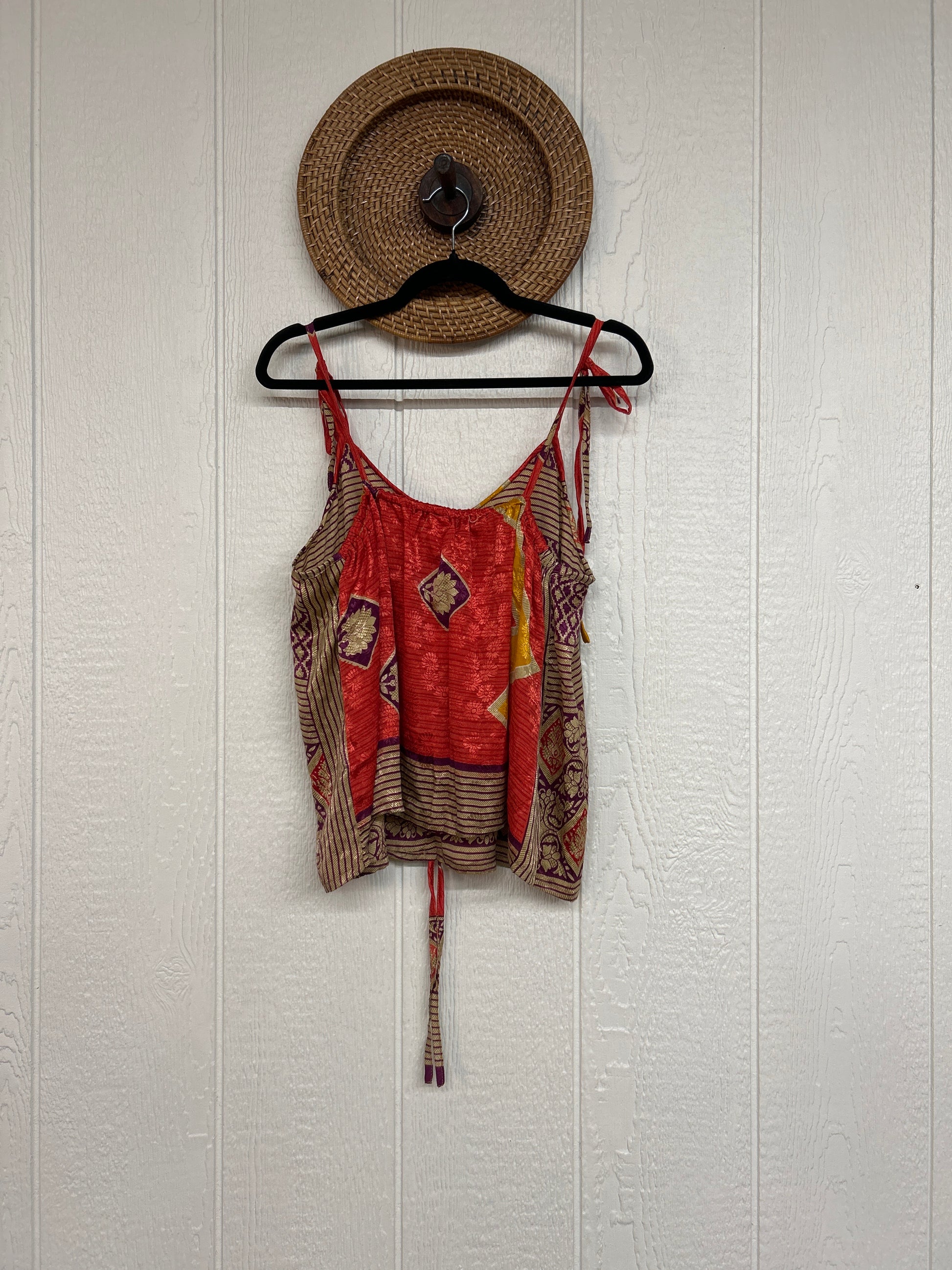 Our Rasgulla Butterfly Tank Top Features adjustable tie straps and a cinch front tie in the front which makes the top customizable for any of your favorite bottoms. Crafted from our ultra lux rasgulla silk this dreamy top is bound to be your new vibey go to! The back also features stretchy elastic for added comfort.