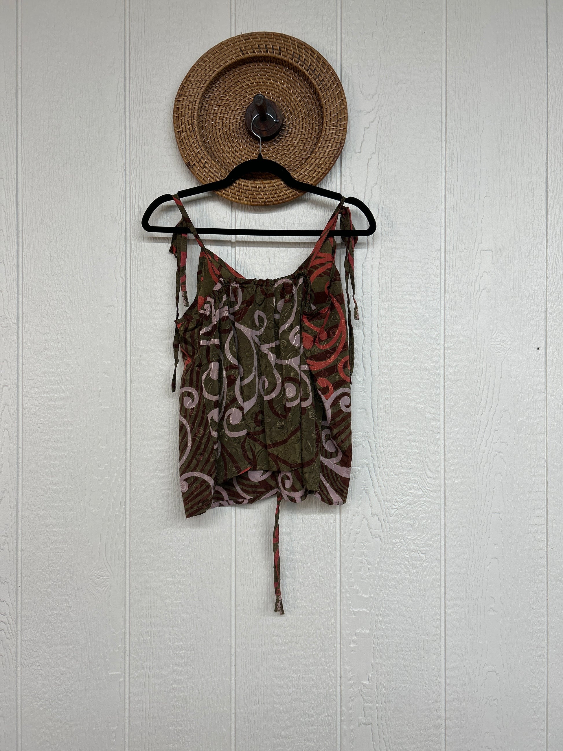 Our Rasgulla Butterfly Tank Top Features adjustable tie straps and a cinch front tie in the front which makes the top customizable for any of your favorite bottoms. Crafted from our ultra lux rasgulla silk this dreamy top is bound to be your new vibey go to! The back also features stretchy elastic for added comfort.