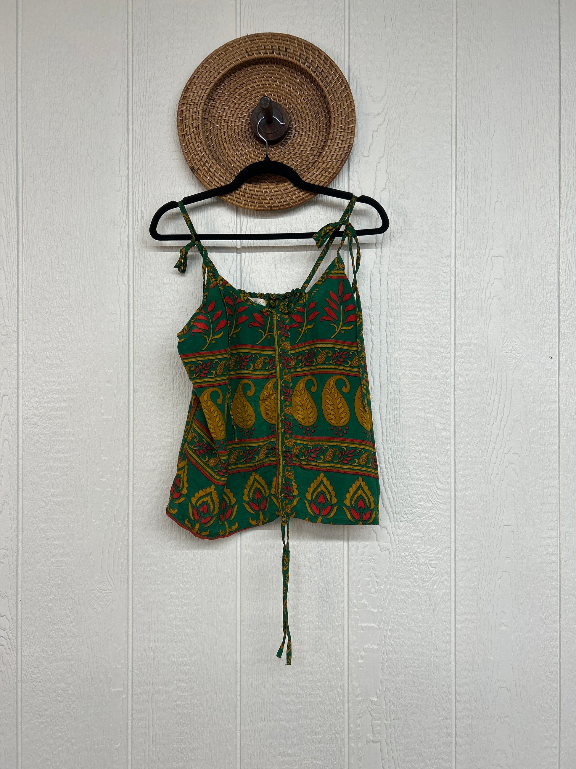 Our Rasgulla Butterfly Tank Top Features adjustable tie straps and a cinch front tie in the front which makes the top customizable for any of your favorite bottoms. Crafted from our ultra lux rasgulla silk this dreamy top is bound to be your new vibey go to! The back also features stretchy elastic for added comfort.