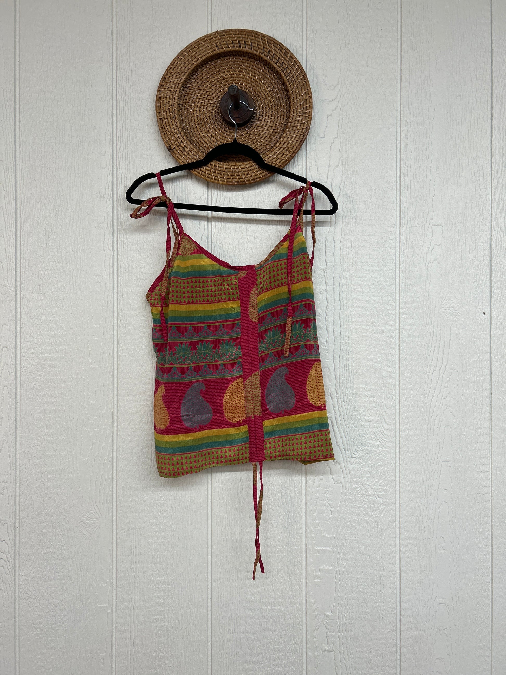 Our Rasgulla Butterfly Tank Top Features adjustable tie straps and a cinch front tie in the front which makes the top customizable for any of your favorite bottoms. Crafted from our ultra lux rasgulla silk this dreamy top is bound to be your new vibey go to! The back also features stretchy elastic for added comfort.
