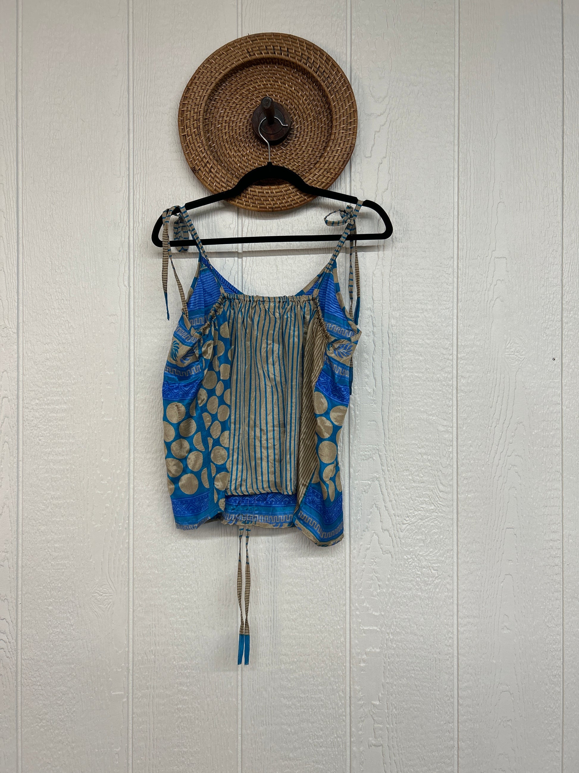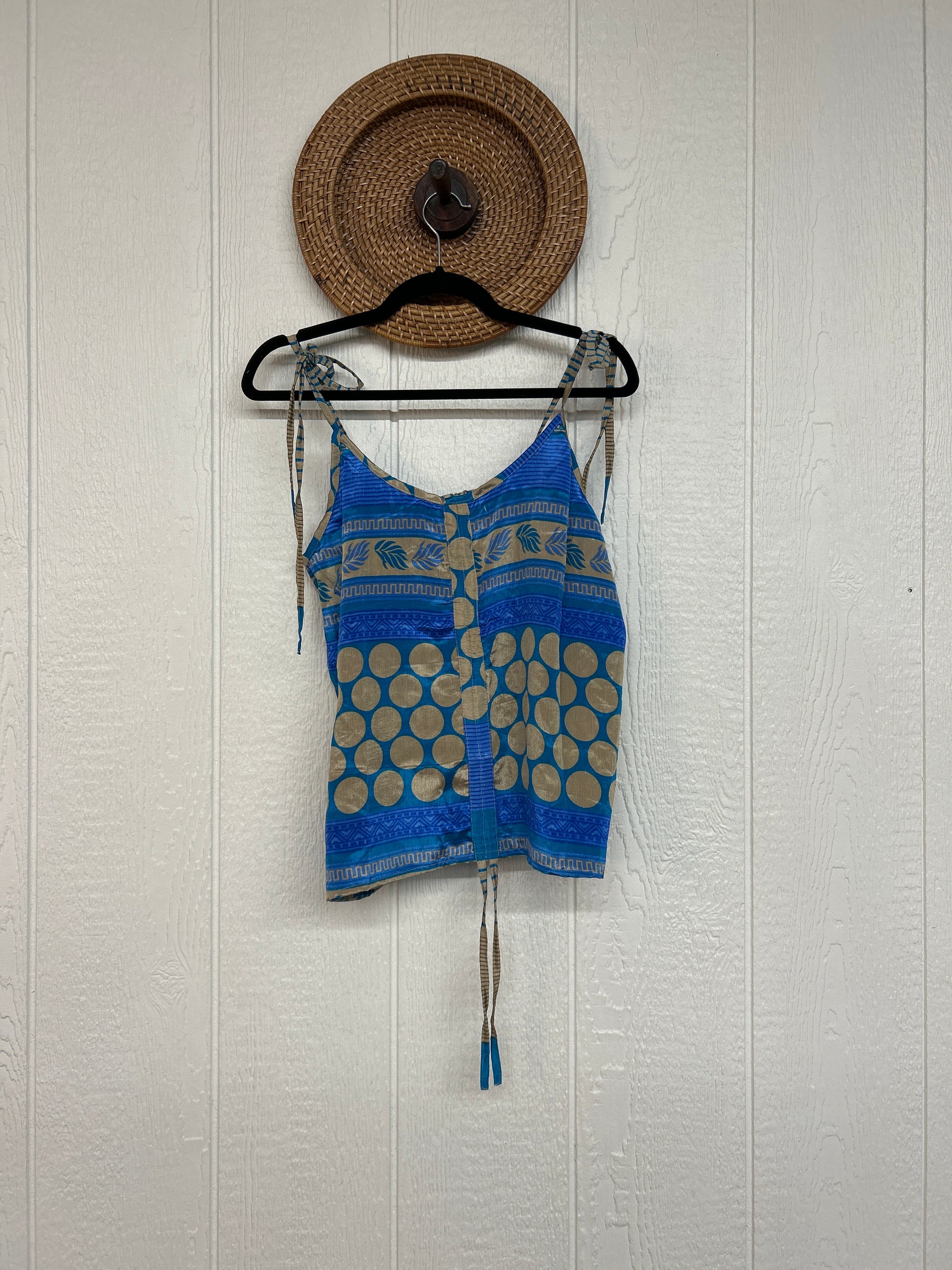 Our Rasgulla Butterfly Tank Top Features adjustable tie straps and a cinch front tie in the front which makes the top customizable for any of your favorite bottoms. Crafted from our ultra lux rasgulla silk this dreamy top is bound to be your new vibey go to! The back also features stretchy elastic for added comfort.