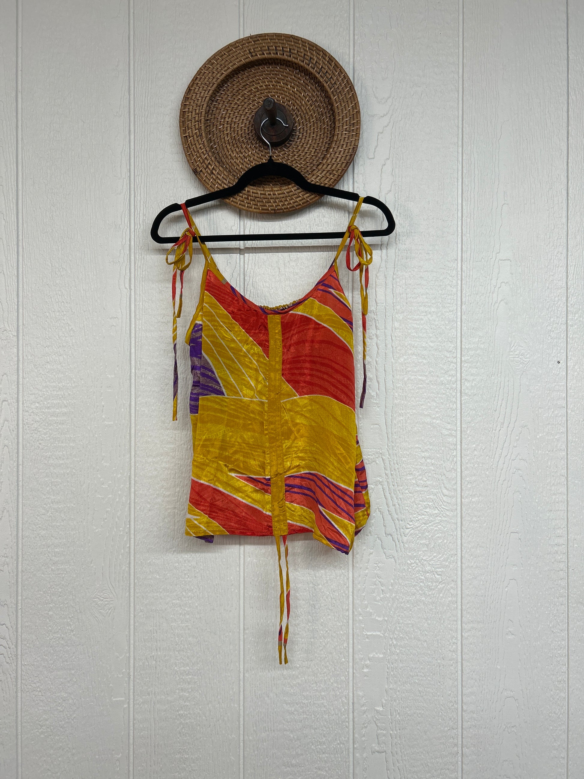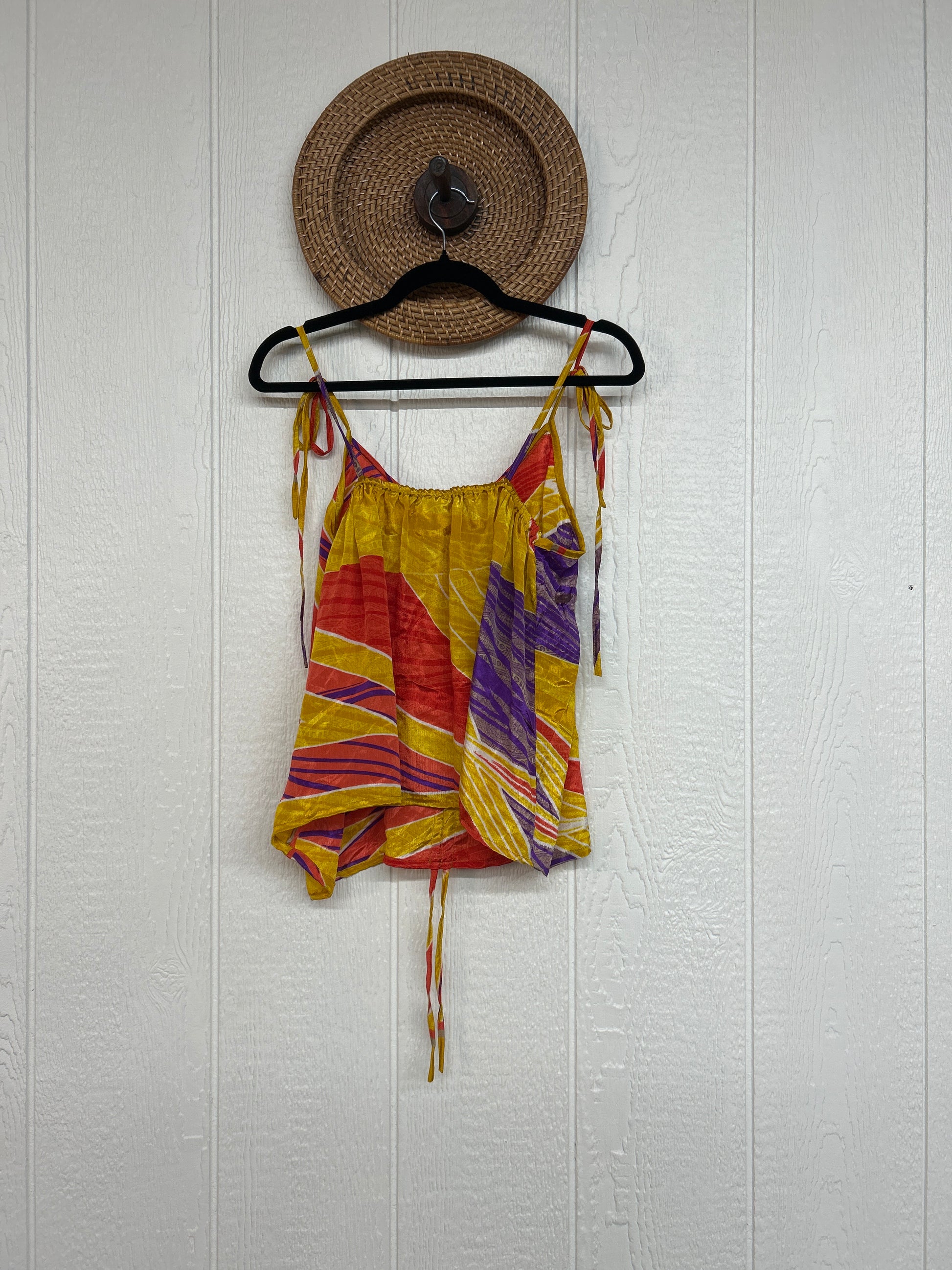 Our Rasgulla Butterfly Tank Top Features adjustable tie straps and a cinch front tie in the front which makes the top customizable for any of your favorite bottoms. Crafted from our ultra lux rasgulla silk this dreamy top is bound to be your new vibey go to! The back also features stretchy elastic for added comfort.