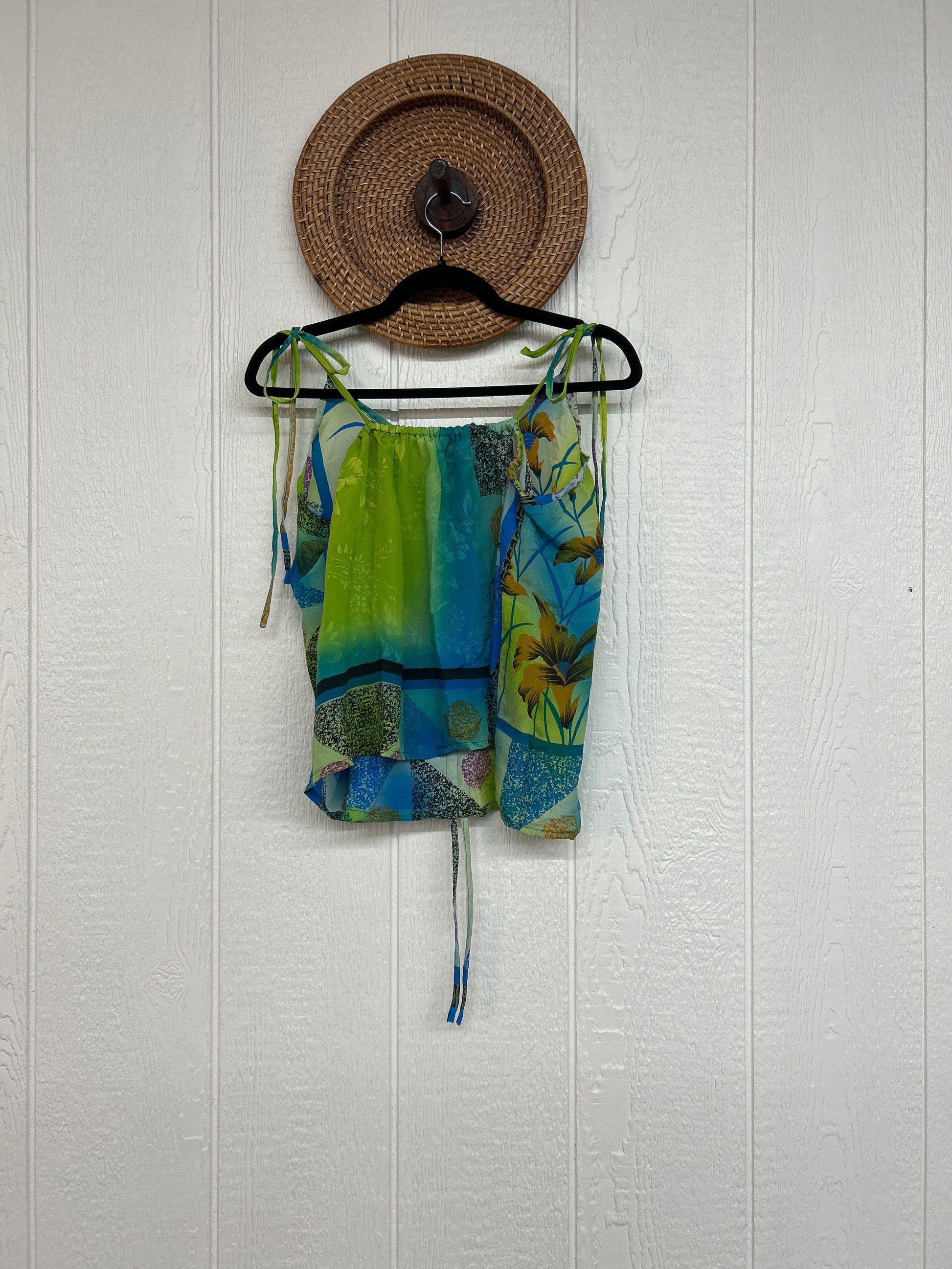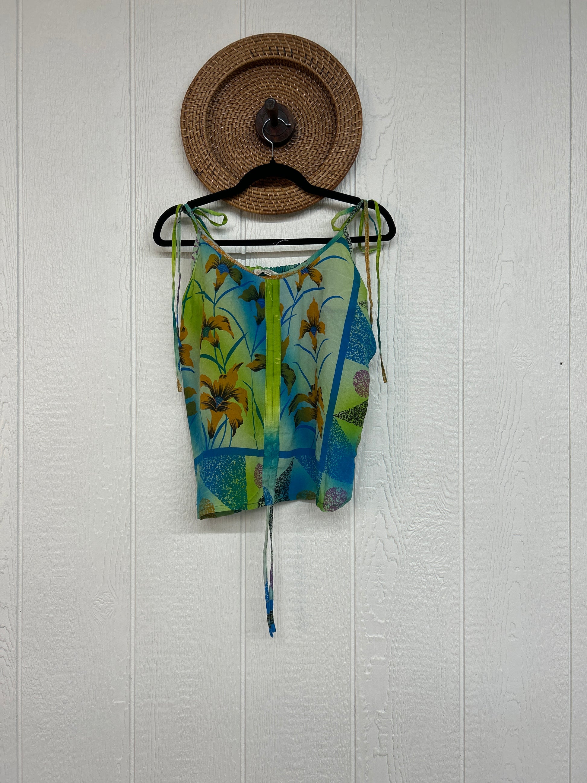 Our Rasgulla Butterfly Tank Top Features adjustable tie straps and a cinch front tie in the front which makes the top customizable for any of your favorite bottoms. Crafted from our ultra lux rasgulla silk this dreamy top is bound to be your new vibey go to! The back also features stretchy elastic for added comfort.