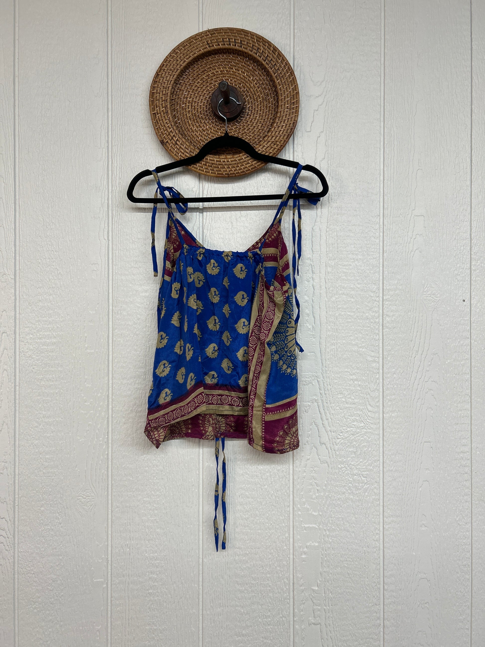 Our Rasgulla Butterfly Tank Top Features adjustable tie straps and a cinch front tie in the front which makes the top customizable for any of your favorite bottoms. Crafted from our ultra lux rasgulla silk this dreamy top is bound to be your new vibey go to! The back also features stretchy elastic for added comfort.
