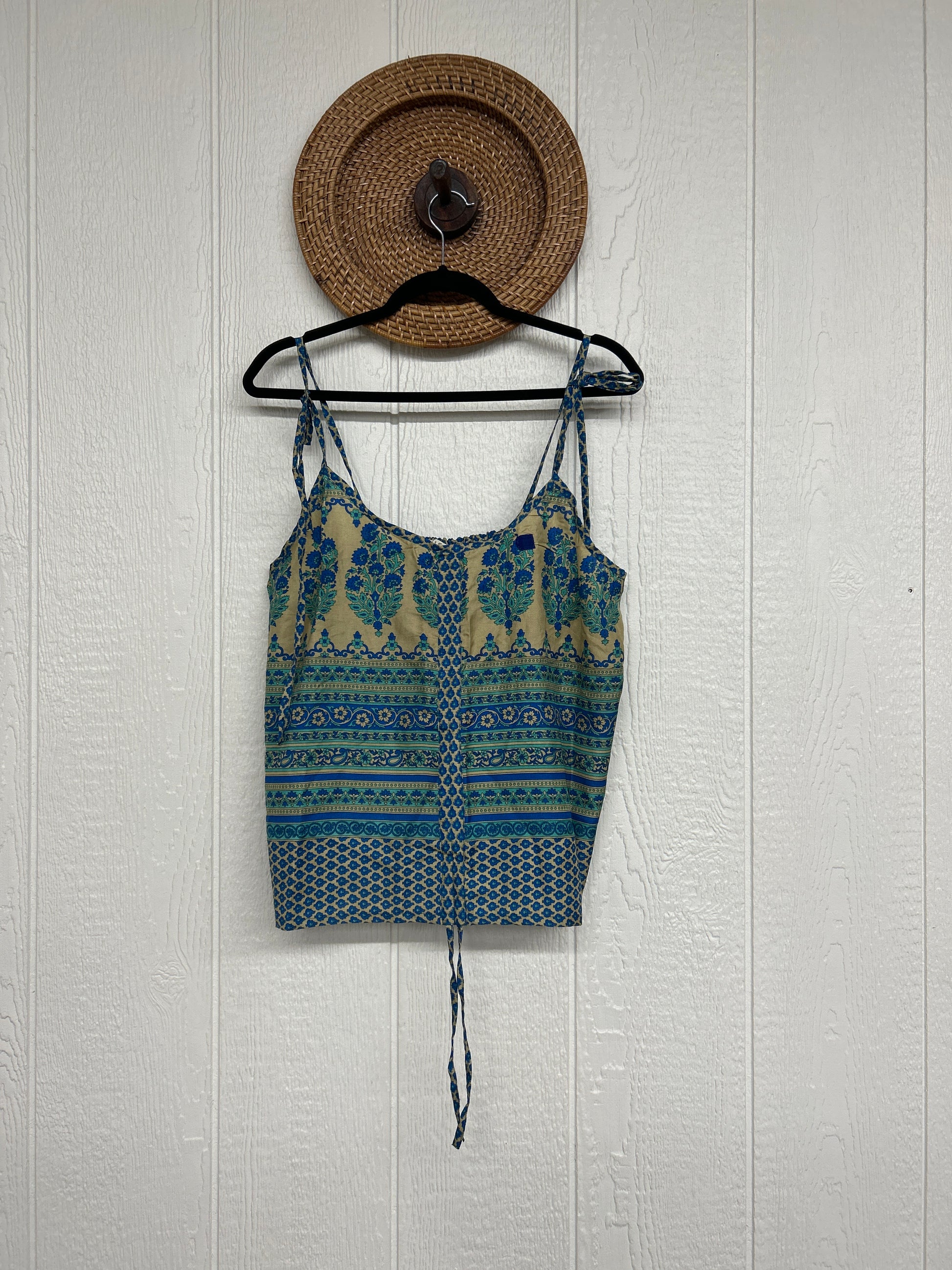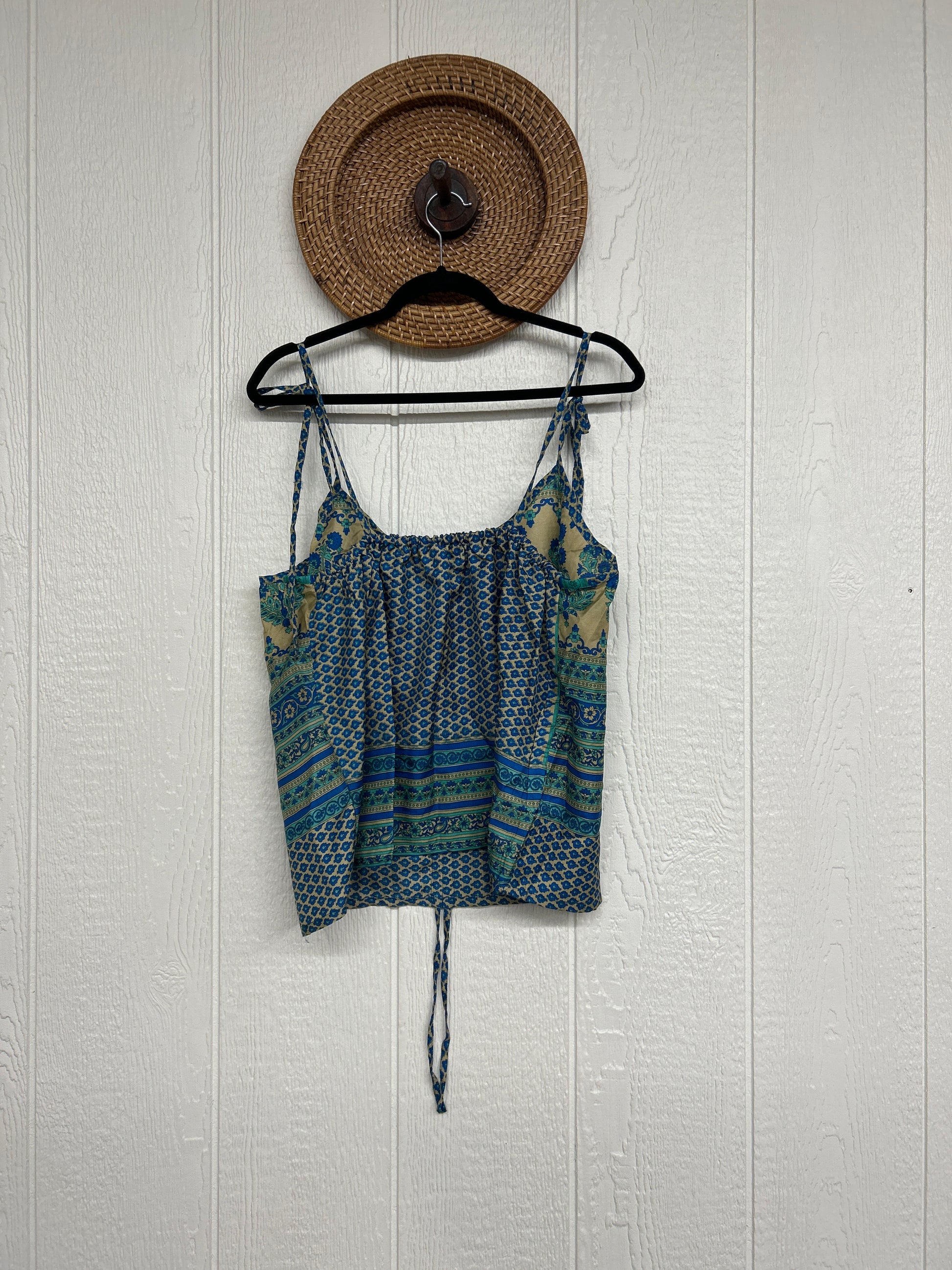 Our Rasgulla Butterfly Tank Top Features adjustable tie straps and a cinch front tie in the front which makes the top customizable for any of your favorite bottoms. Crafted from our ultra lux rasgulla silk this dreamy top is bound to be your new vibey go to! The back also features stretchy elastic for added comfort.